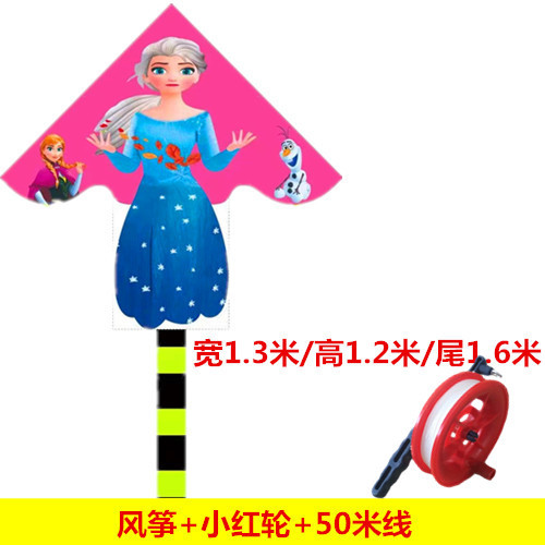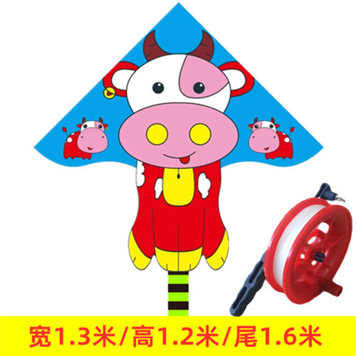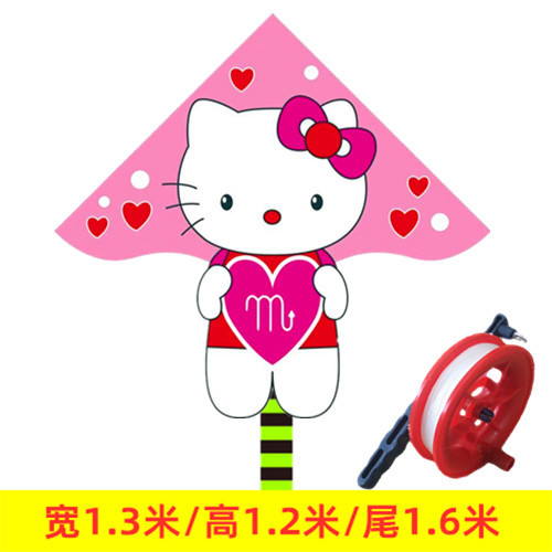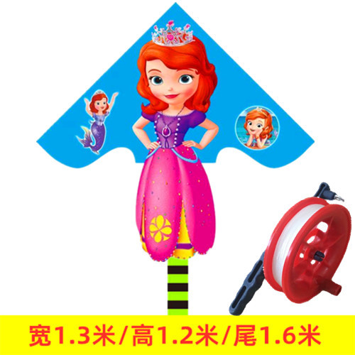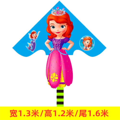送铃铛包头1.3米格子布卡通儿童风筝 微风易飞三角长尾潍坊厂家