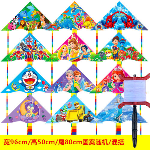1米三角儿童卡通风筝 地摊微风易飞 潍坊厂家批发 公主带线轮