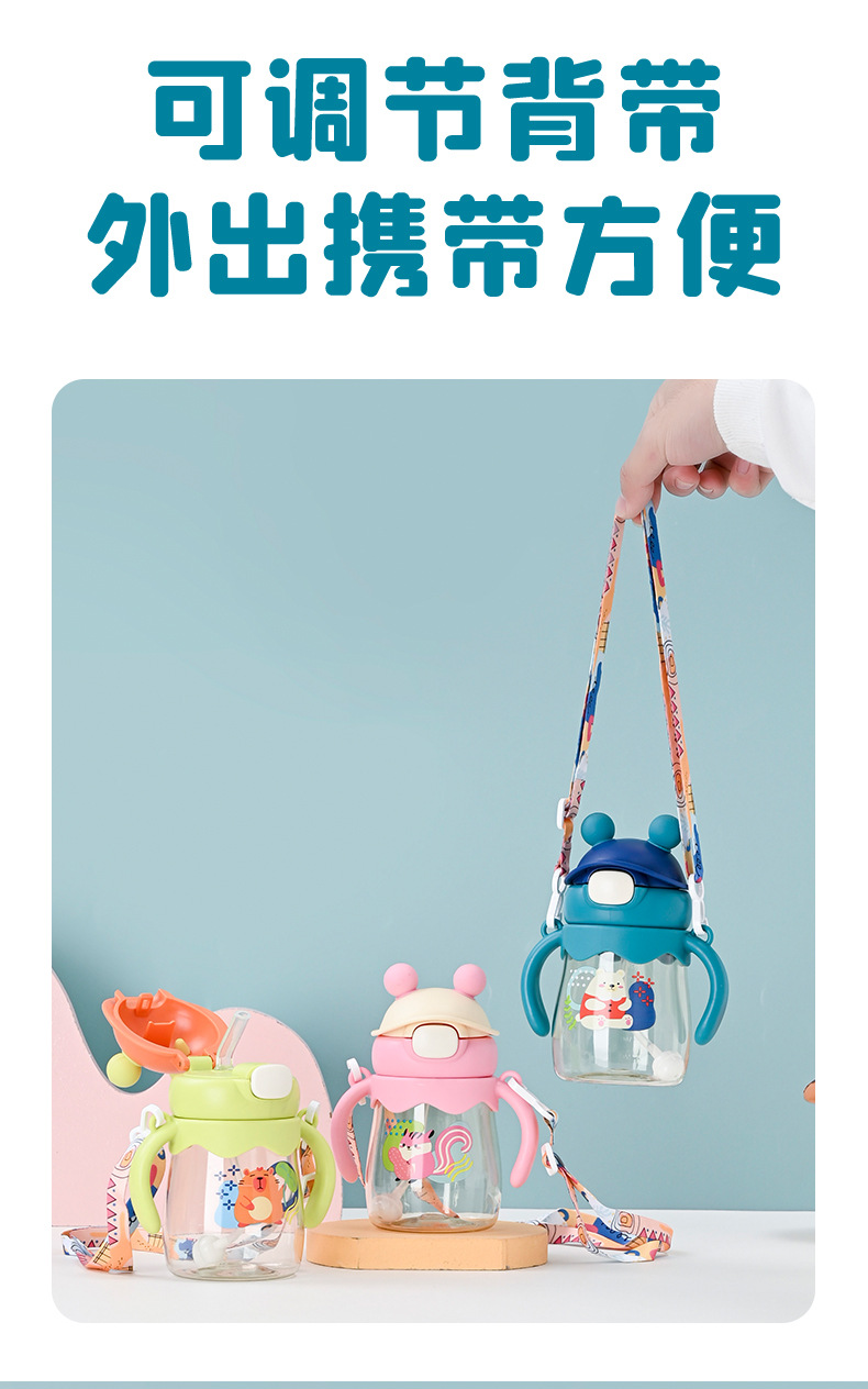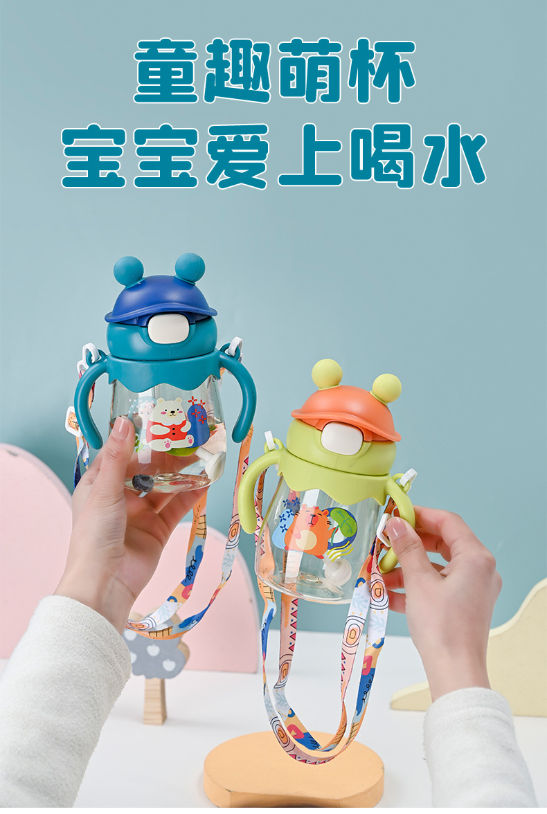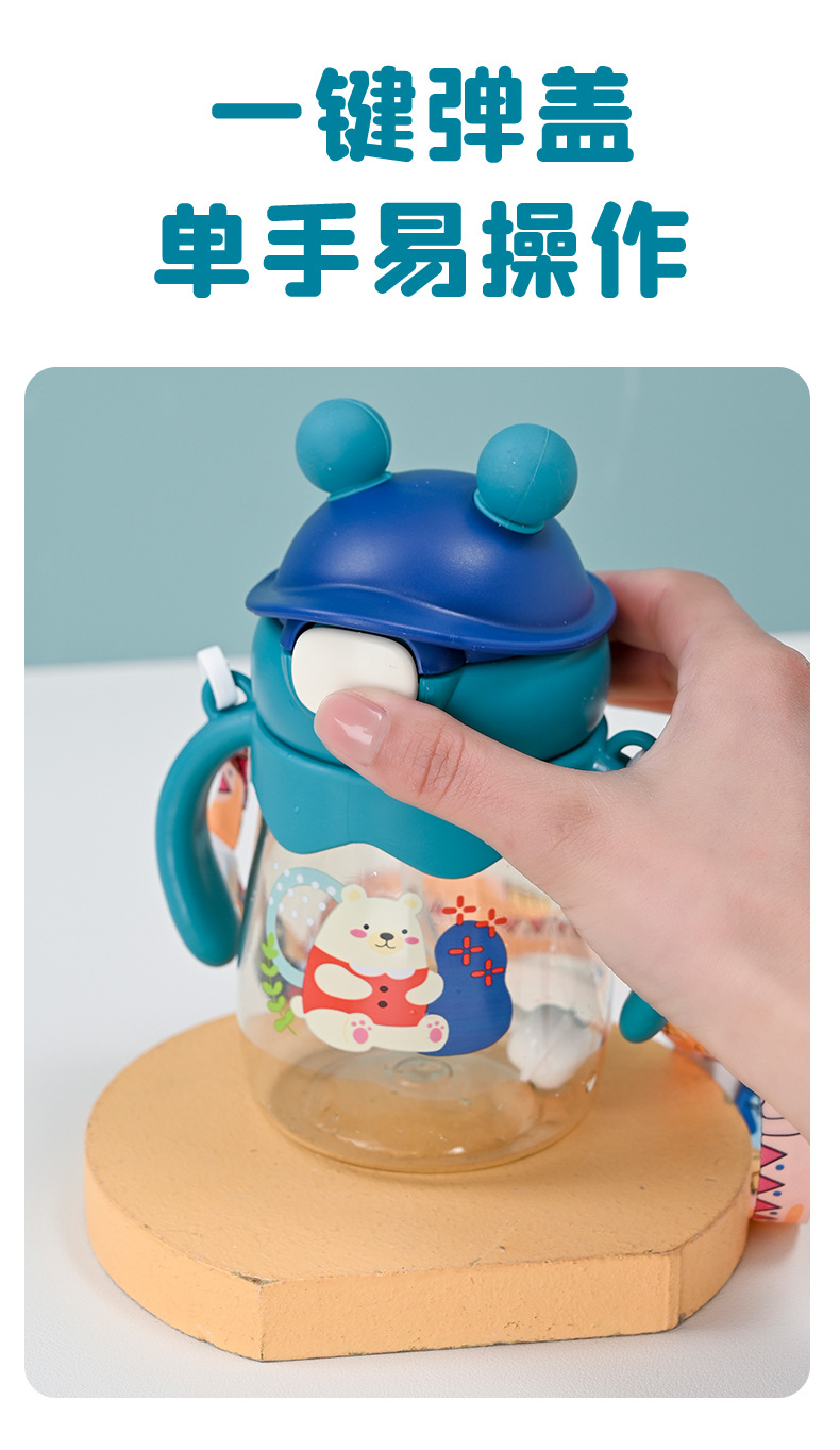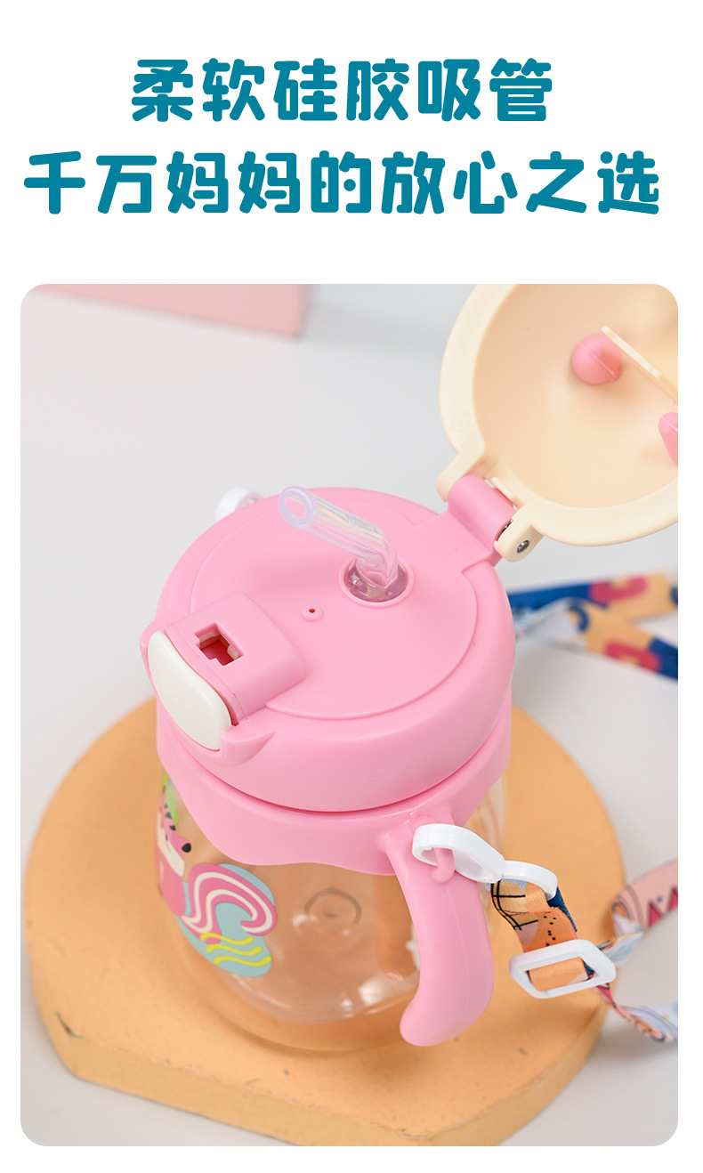 可爱小兔杯高颜值卡通运动大肚杯新款简约儿童塑料杯户外便带提手