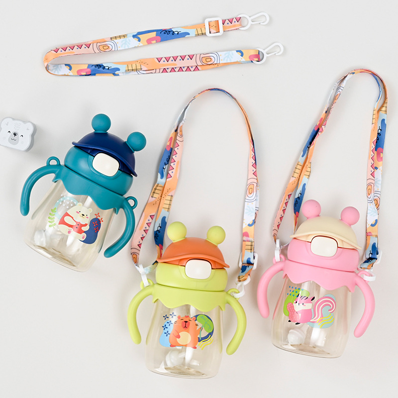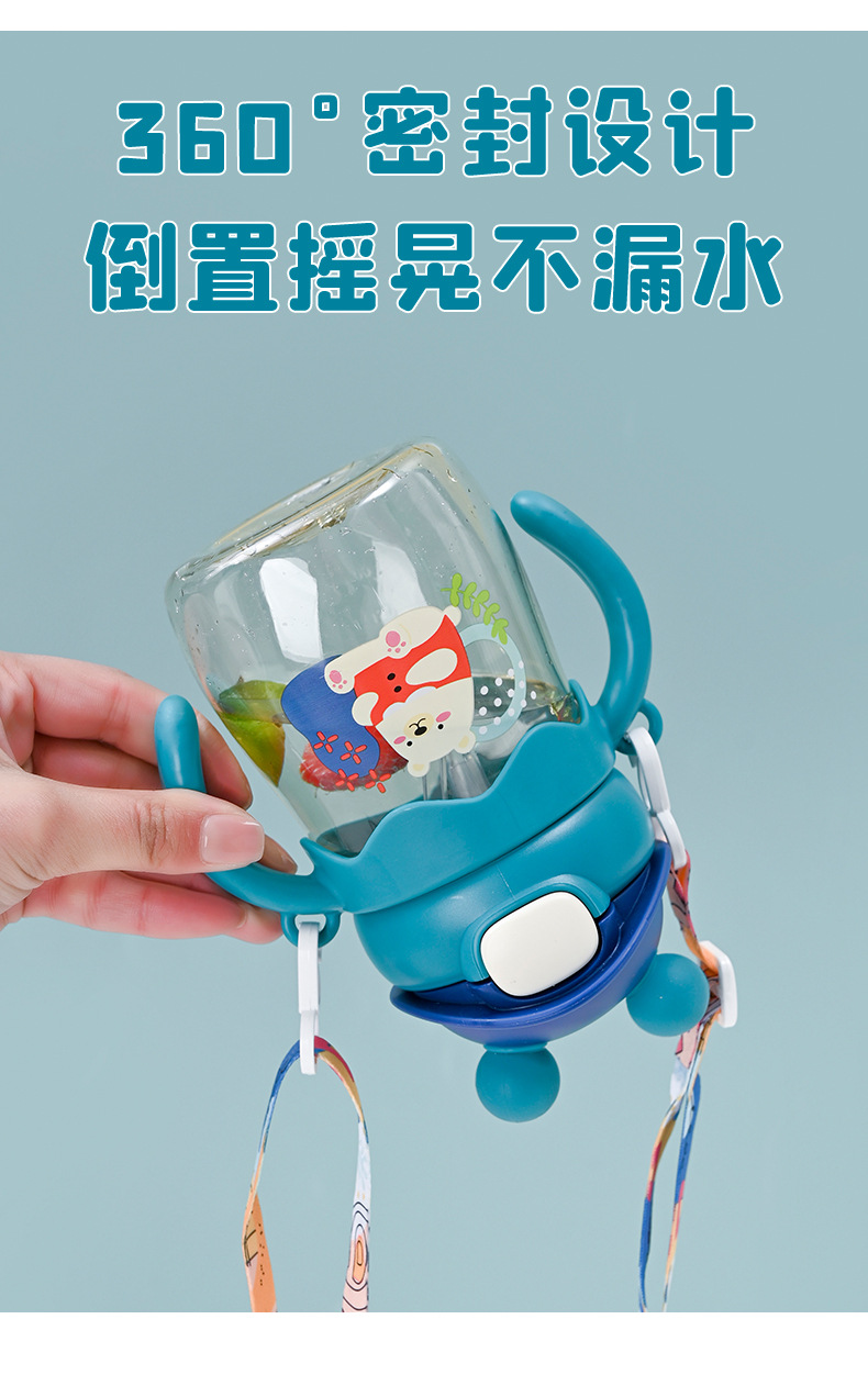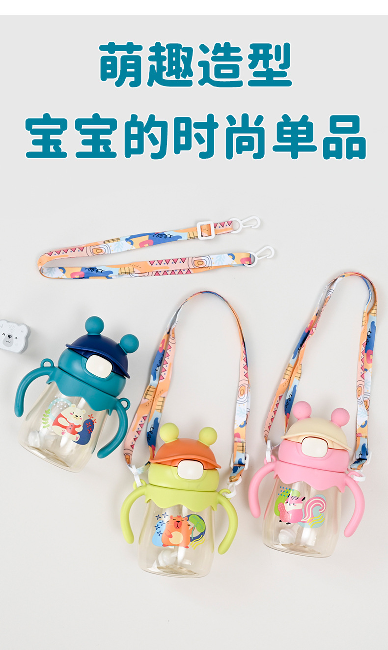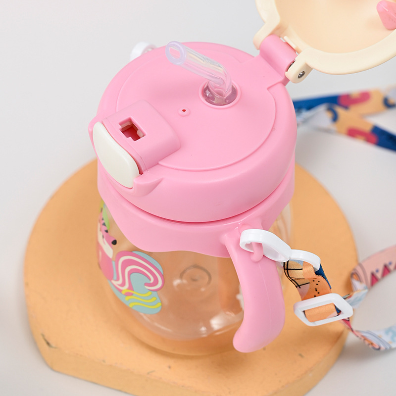 可爱小兔杯高颜值卡通运动大肚杯新款简约儿童塑料杯户外便带提手