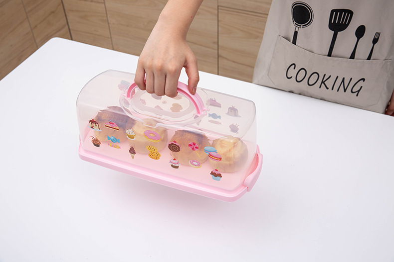 重复使用手提毛巾卷 蛋糕卷包装盒 吐司面包烘培透明塑料盒子