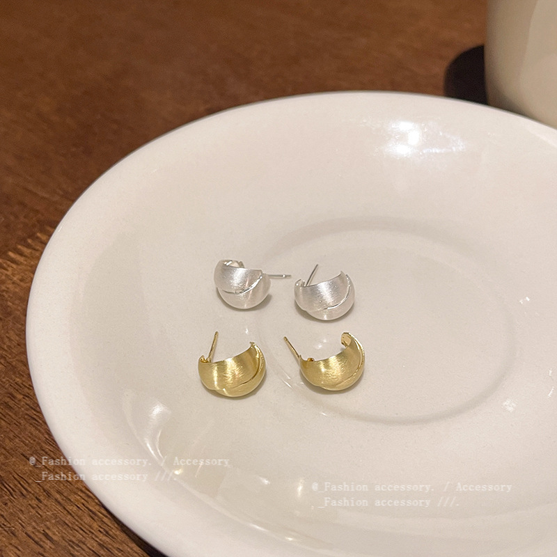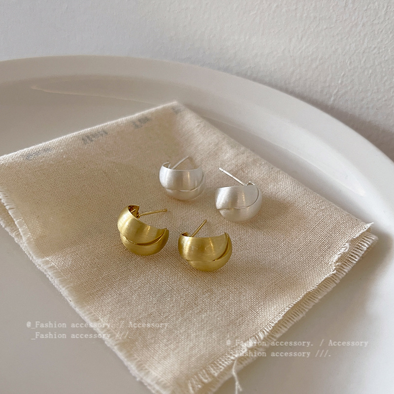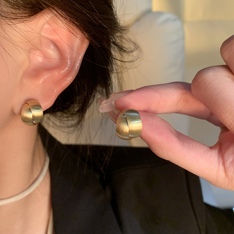 轻奢小众设计感金色磨砂圆圈耳钉女高级感百搭气质小豆豆耳环耳饰