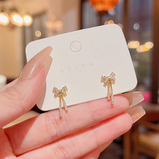 S925银针精致微镶锆石蝴蝶结耳环女ins潮轻奢小众耳钉耳饰品批发