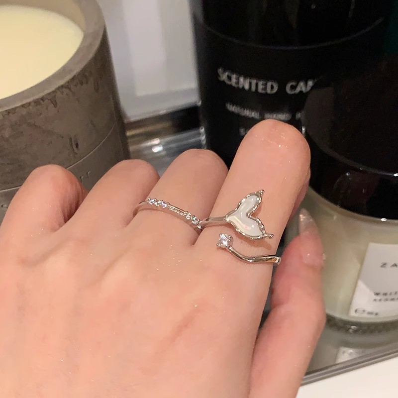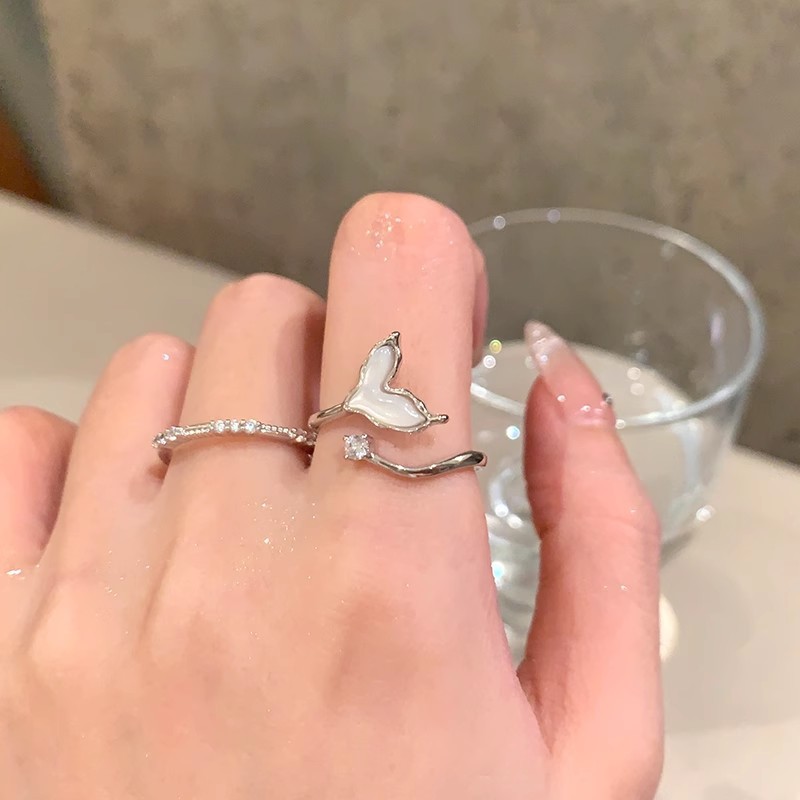 轻奢小众设计感鱼尾戒指女百搭气质开口可调节食指戒网红指环批发
