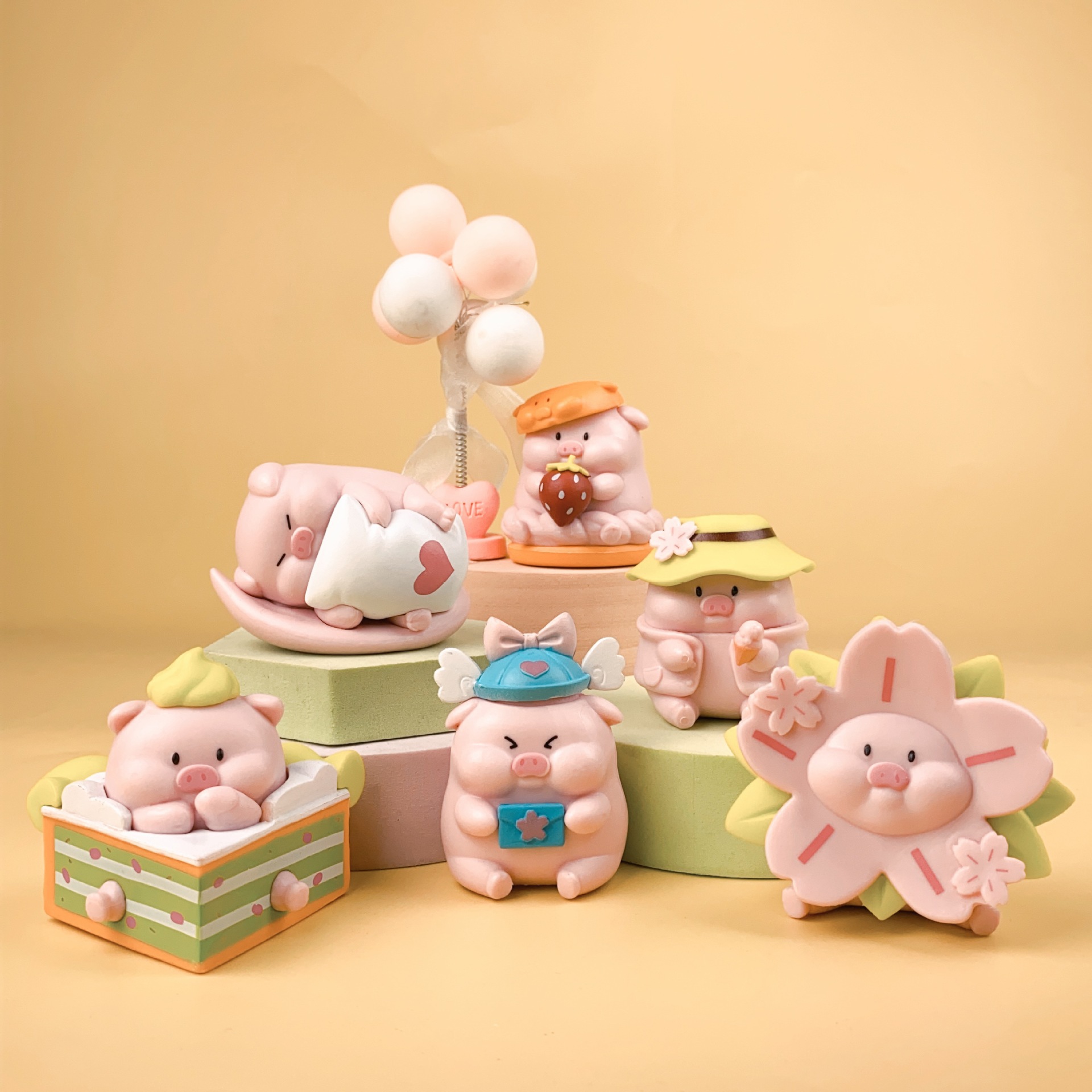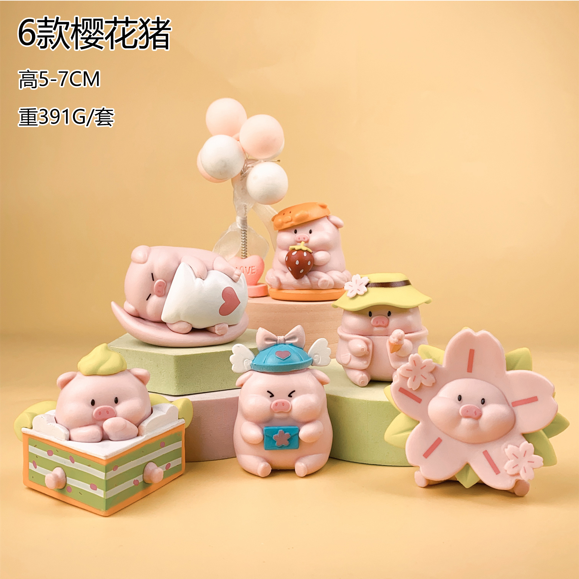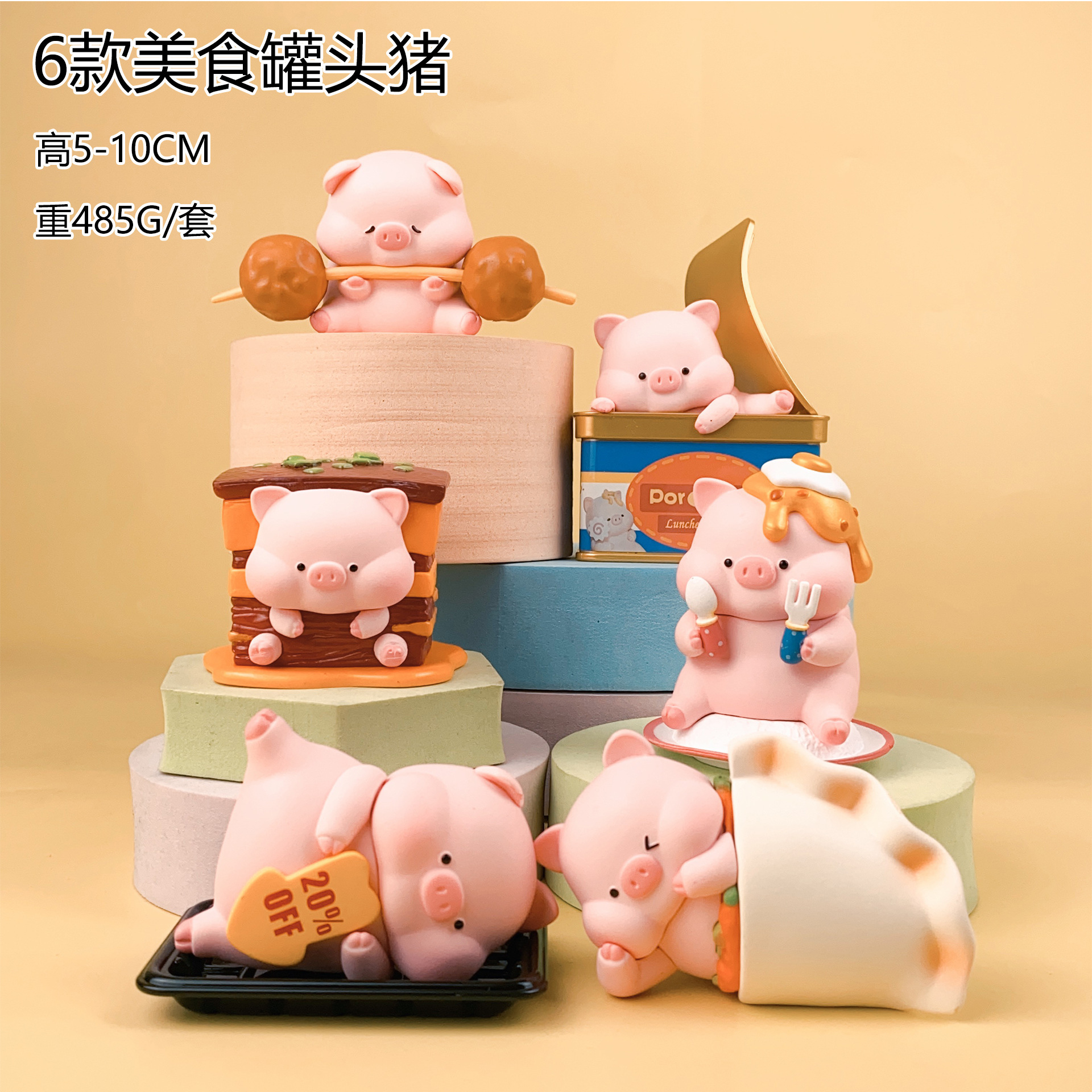 新品 6款罐头猪手办 可爱少女心公仔萌宠小猪车载蛋糕烘焙摆件扭