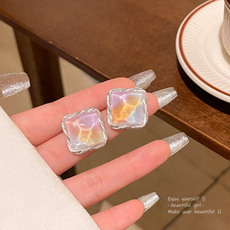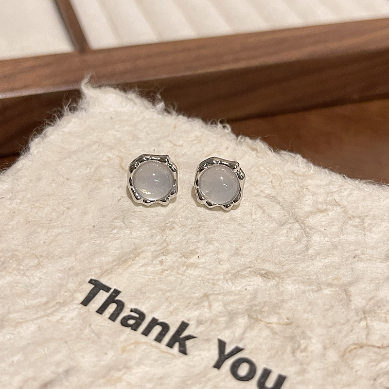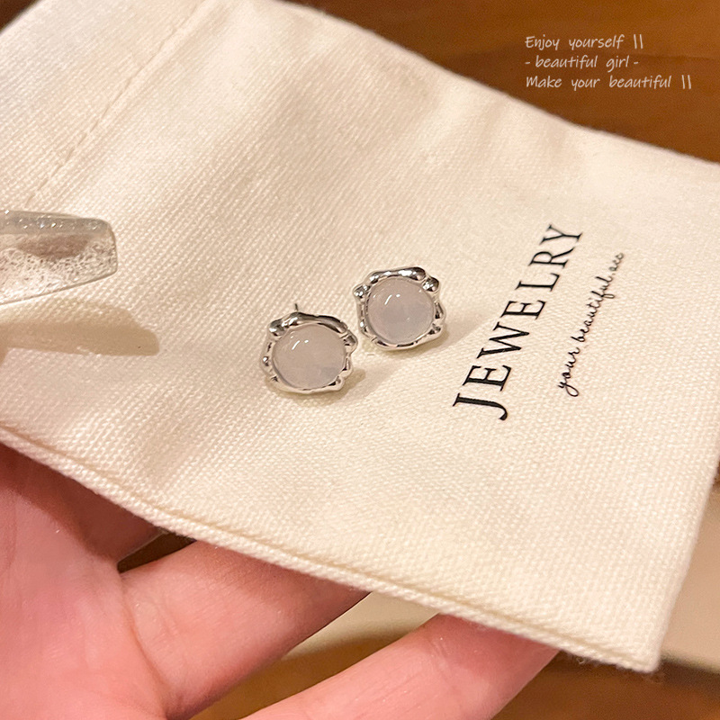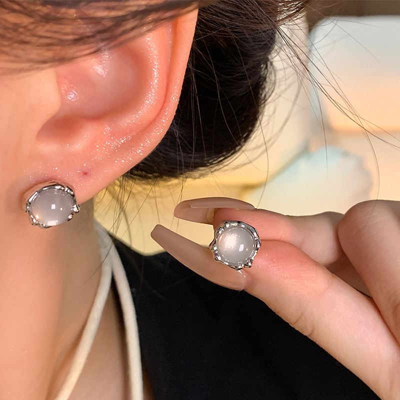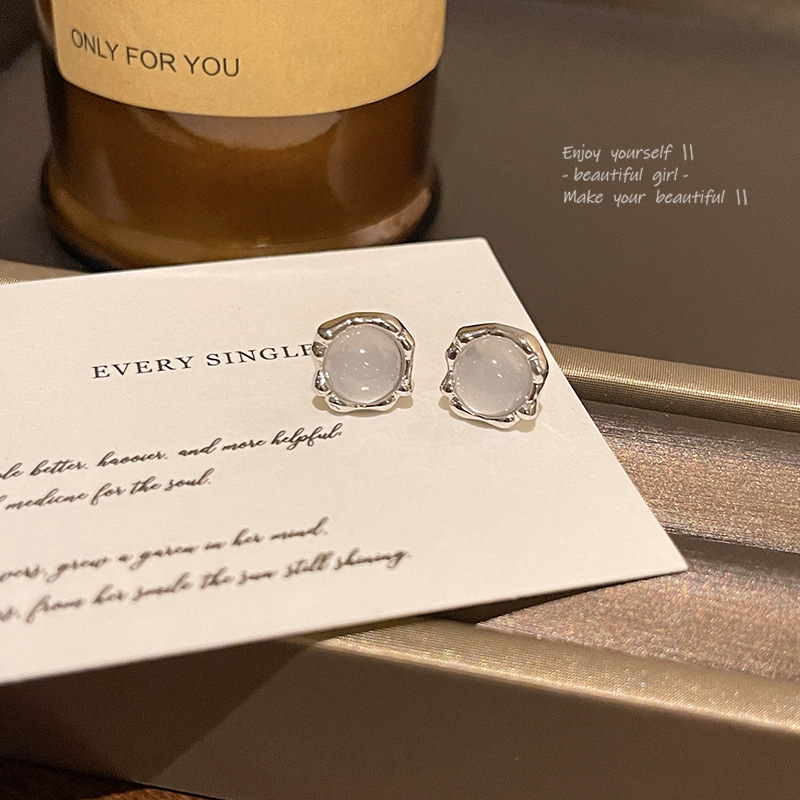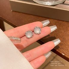 S925银针简约气质小清猫眼石耳钉女小众高级感几何形耳环耳饰批发