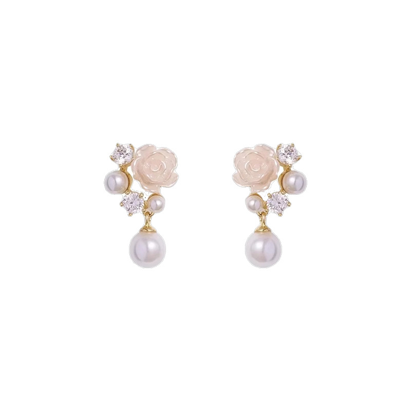 S925银针轻奢小众珍珠花朵耳环女ins潮春夏爆款小清新山茶花耳钉