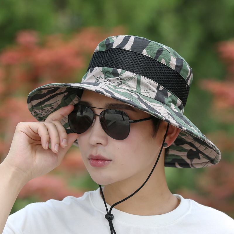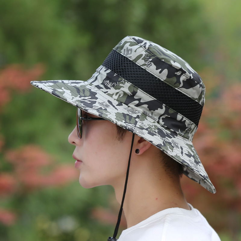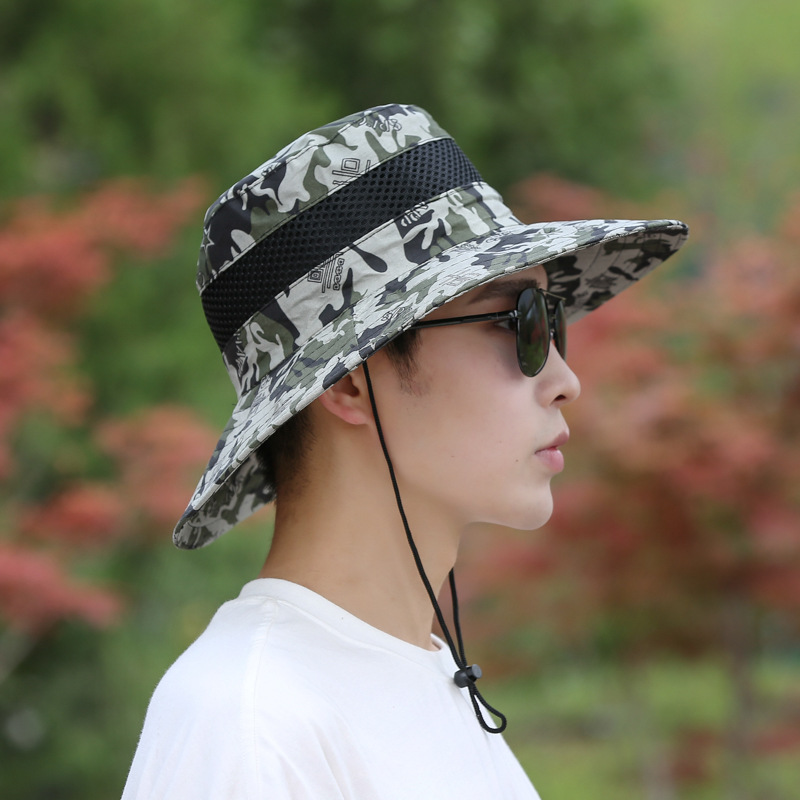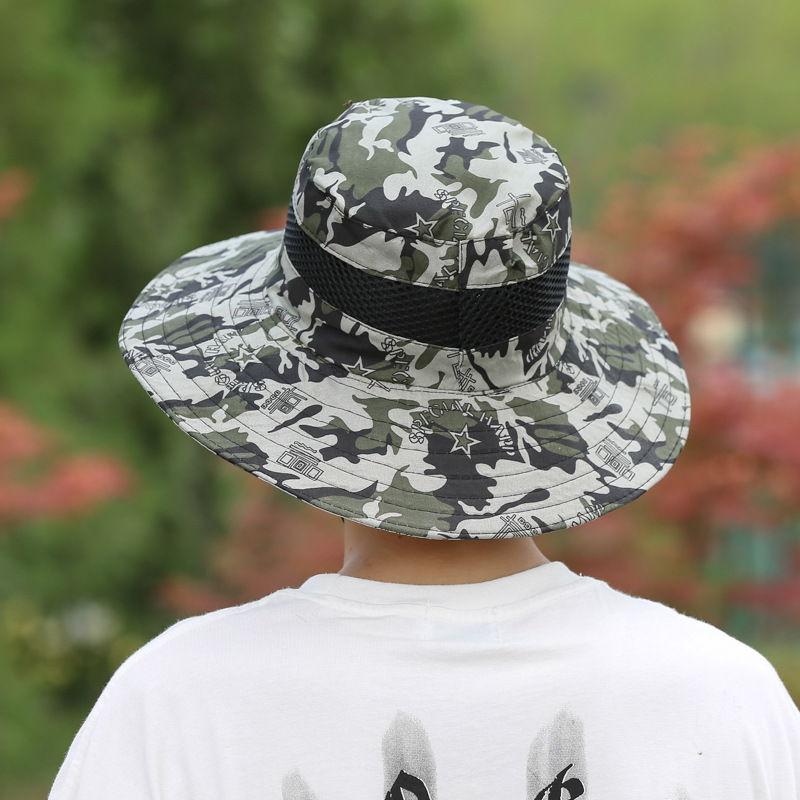渔夫帽子男士春夏季迷彩盆帽户外爬山钓鱼遮阳防晒帽太阳帽批发
