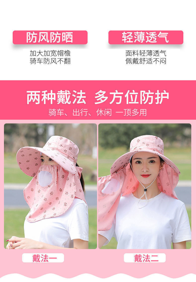 帽子女夏季防晒帽户外采茶帽太阳帽大帽檐骑车遮脸防紫外线遮阳帽