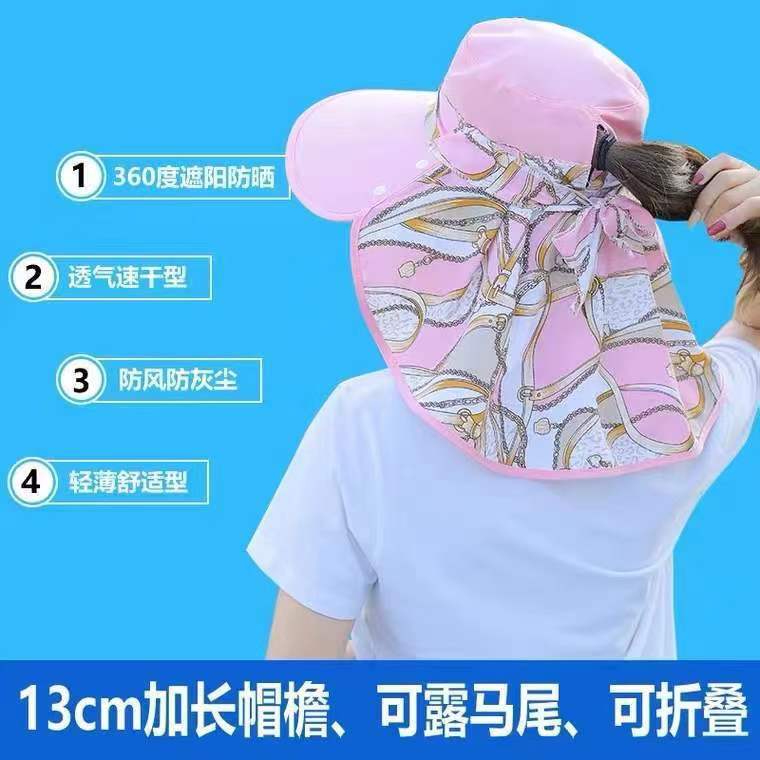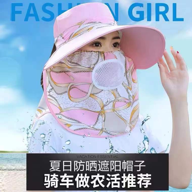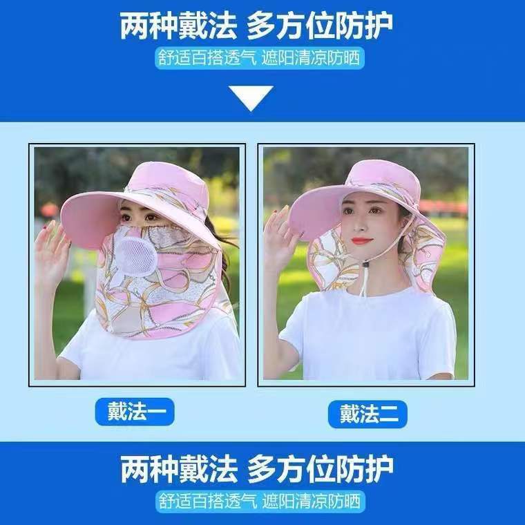 2023春季新款韩版女遮阳帽大帽檐防晒遮阳披肩帽口罩护颈一体帽子