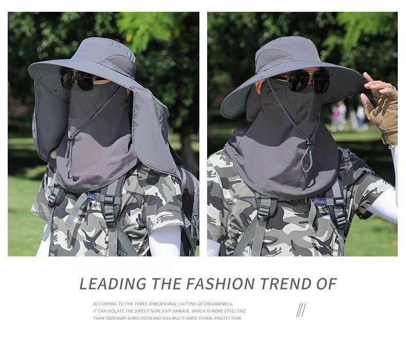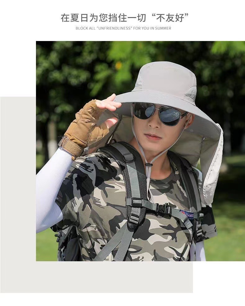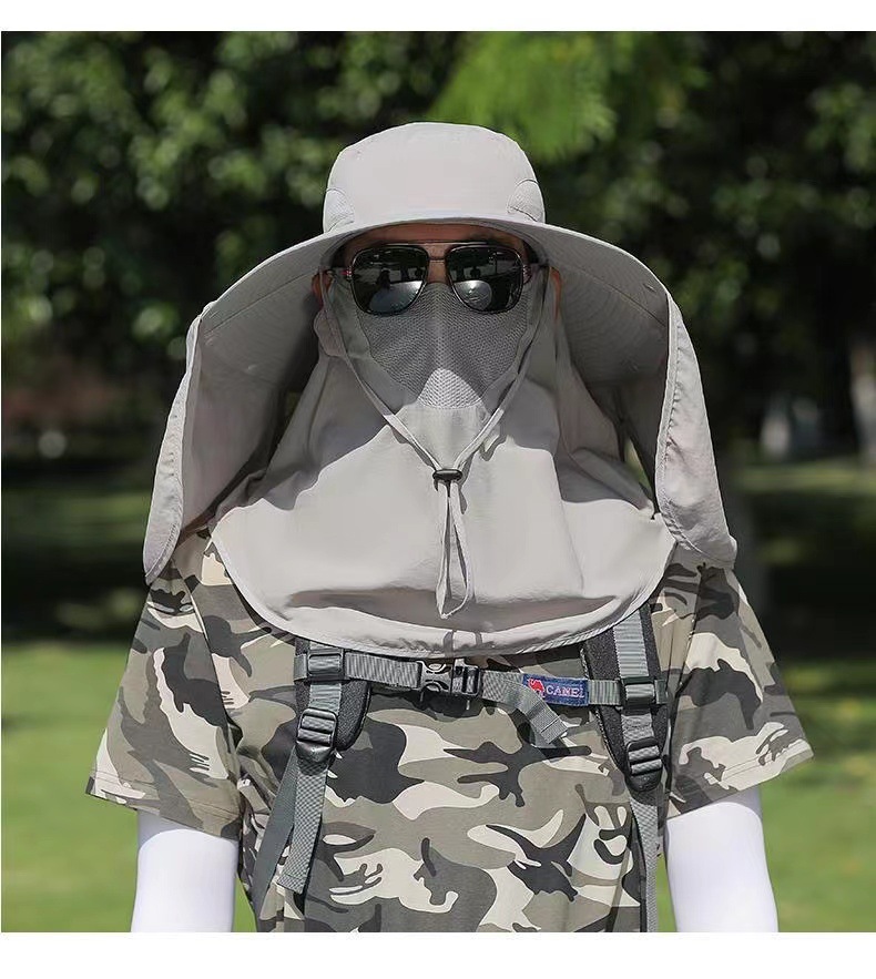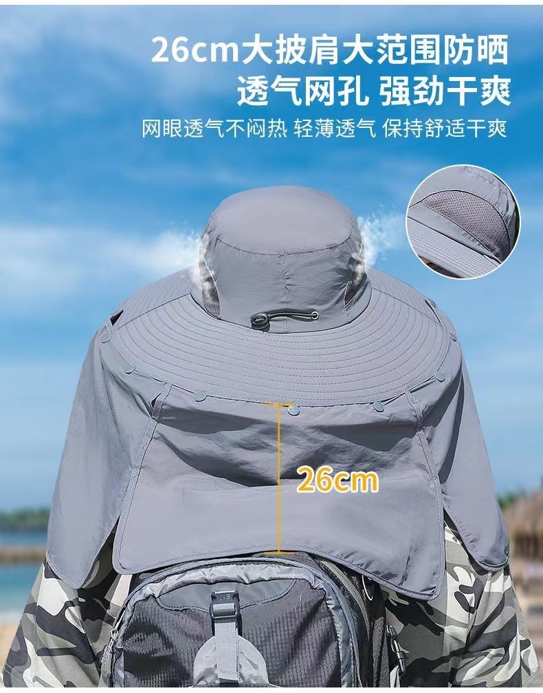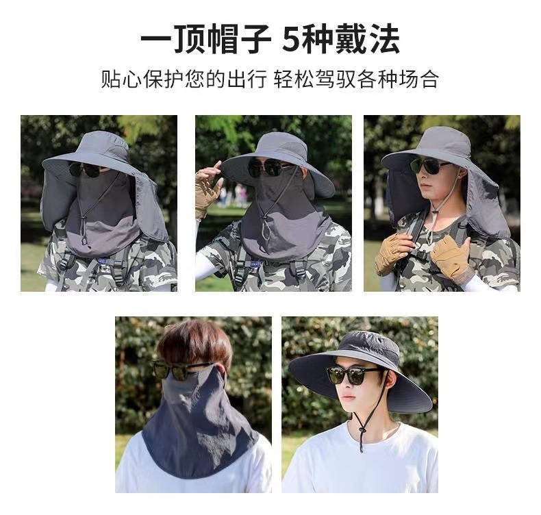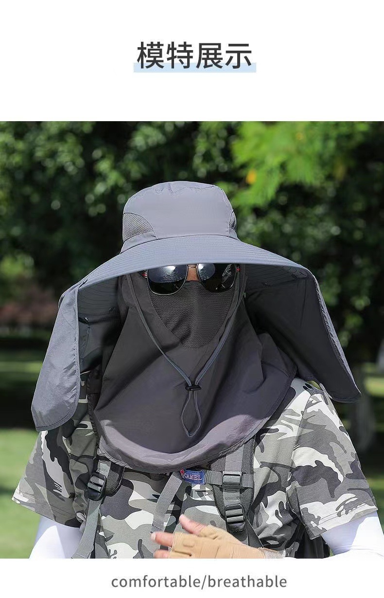 男士新款防晒帽子钓鱼帽户外登山遮阳帽遮脸可拆卸防紫外线披肩帽