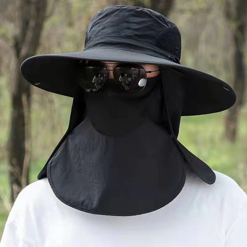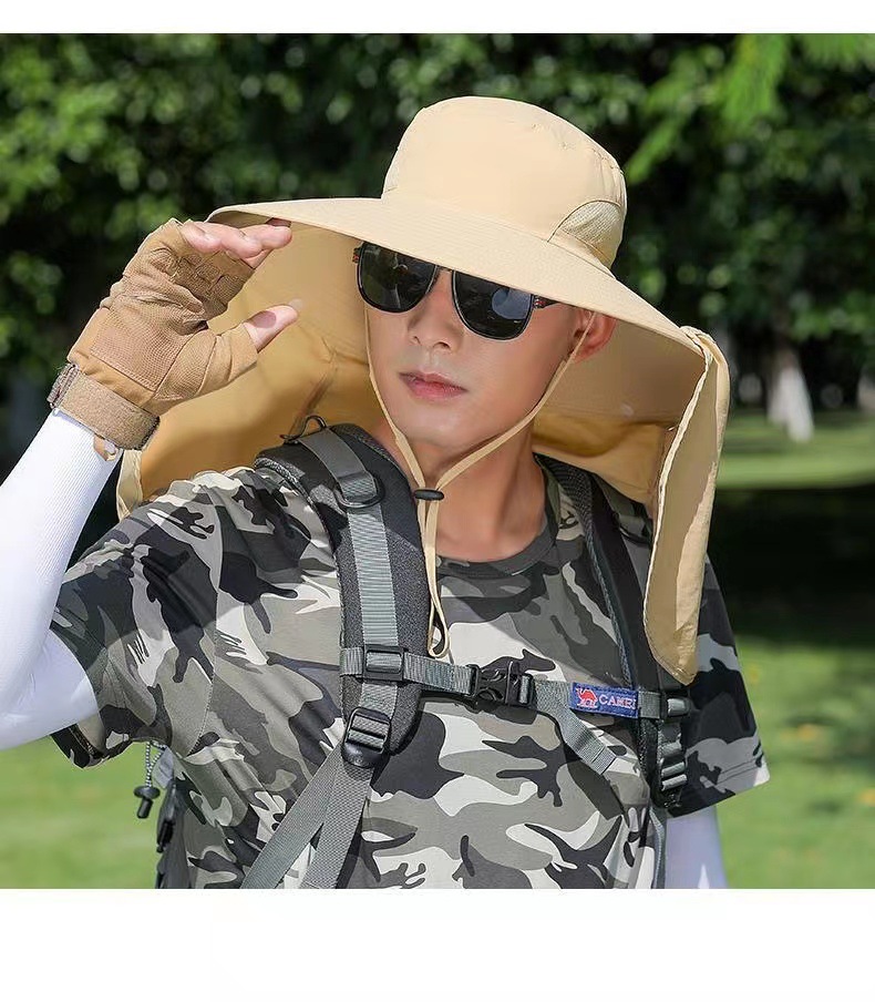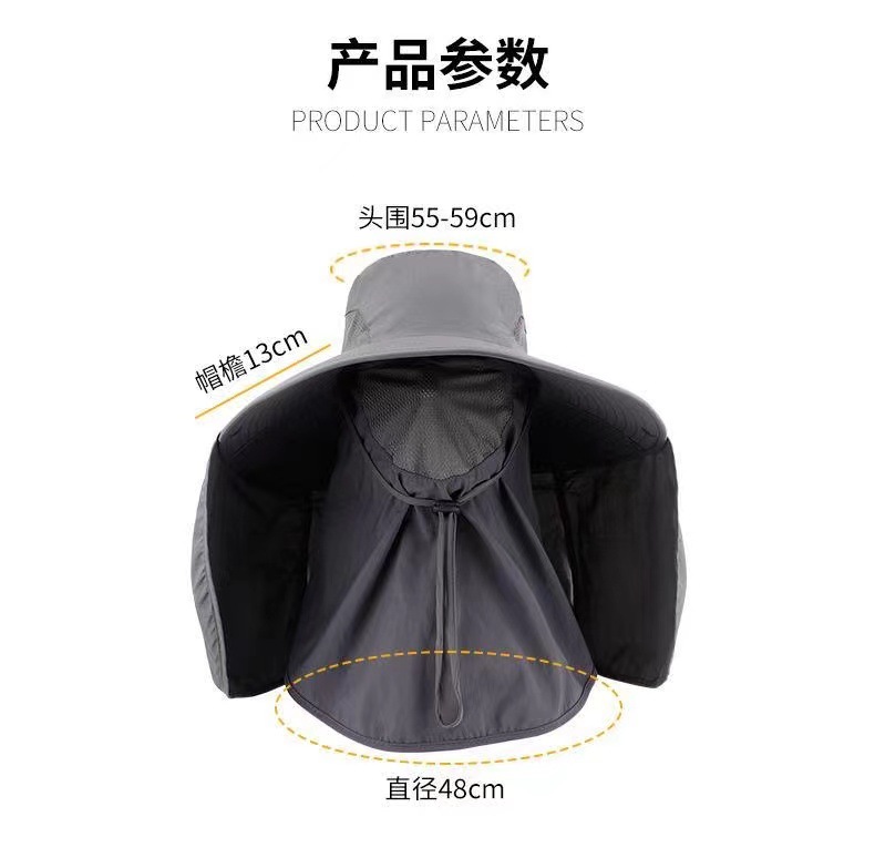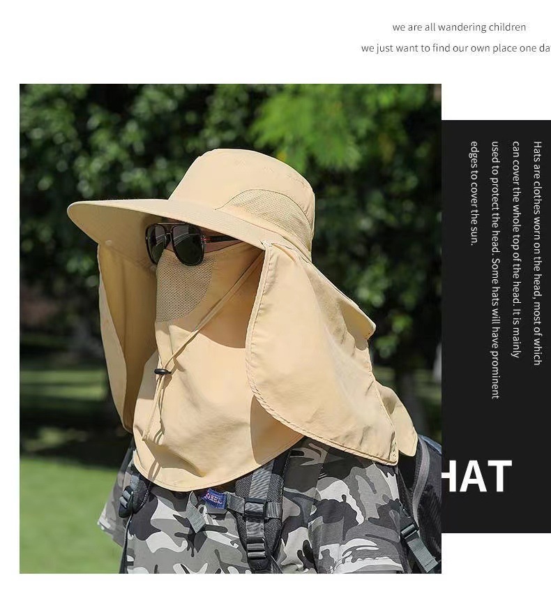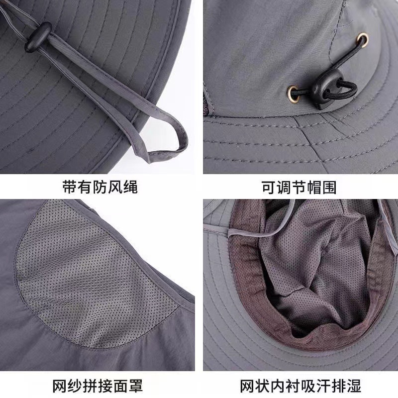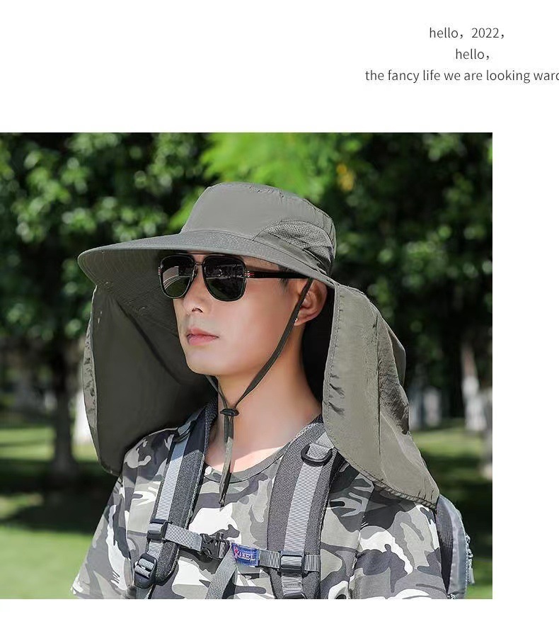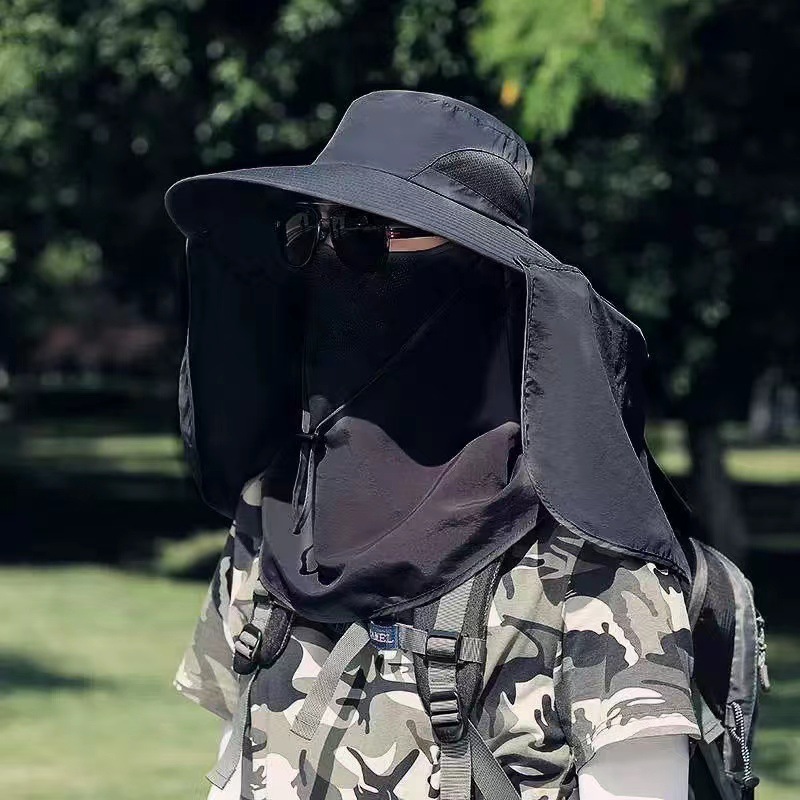 男士新款防晒帽子钓鱼帽户外登山遮阳帽遮脸可拆卸防紫外线披肩帽