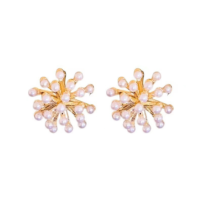 S925银针轻奢小众珍珠爆米花耳钉女韩国新款百搭气质烟花耳环耳饰