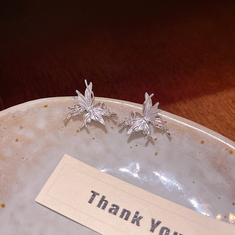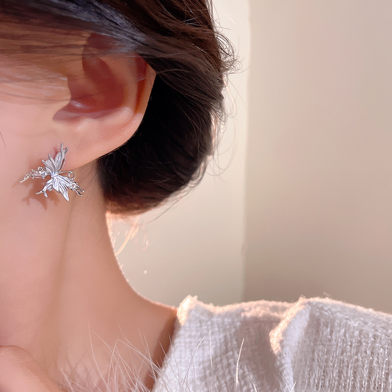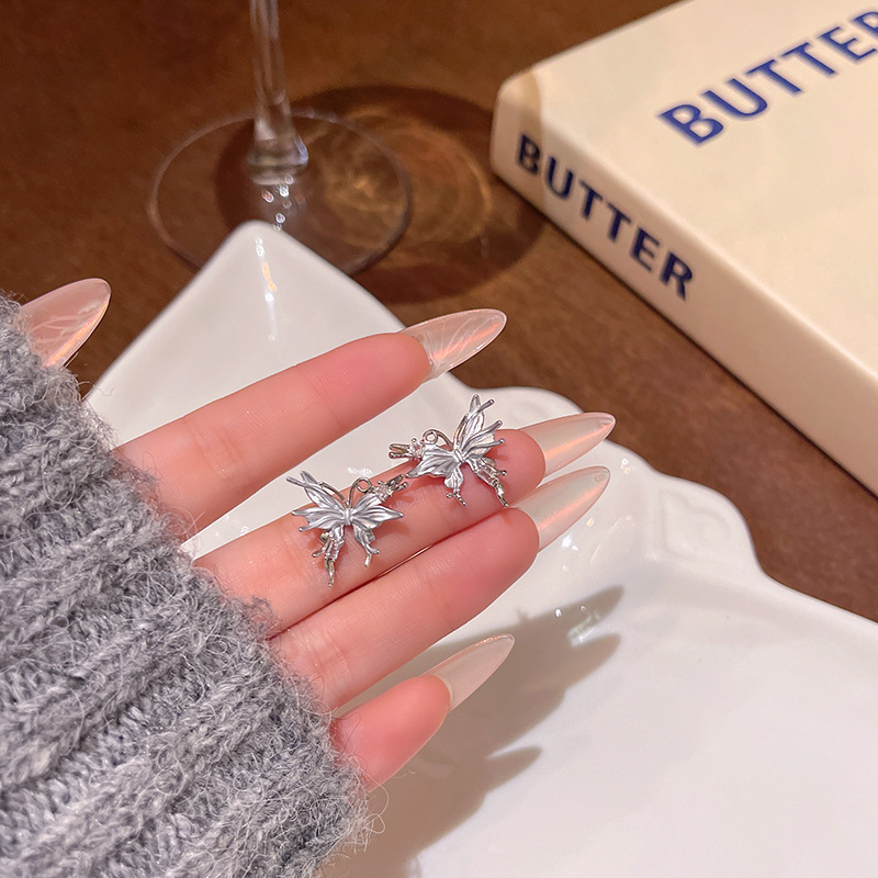 韩系爆款镂空蝴蝶耳环女轻奢小众设计金属感耳钉ins潮耳饰品批发
