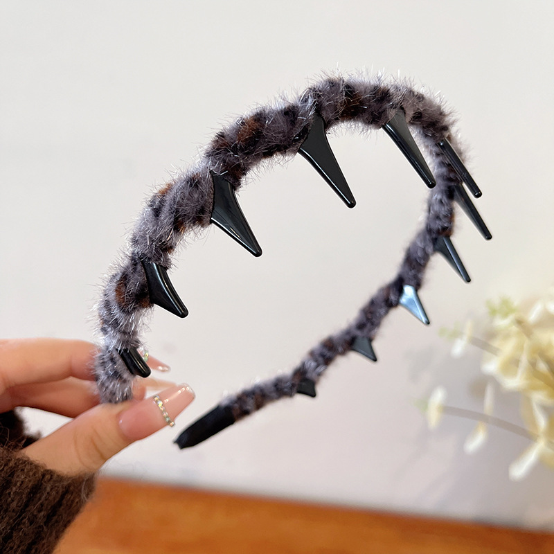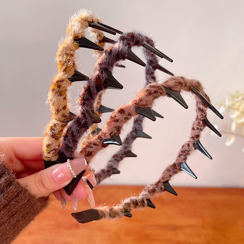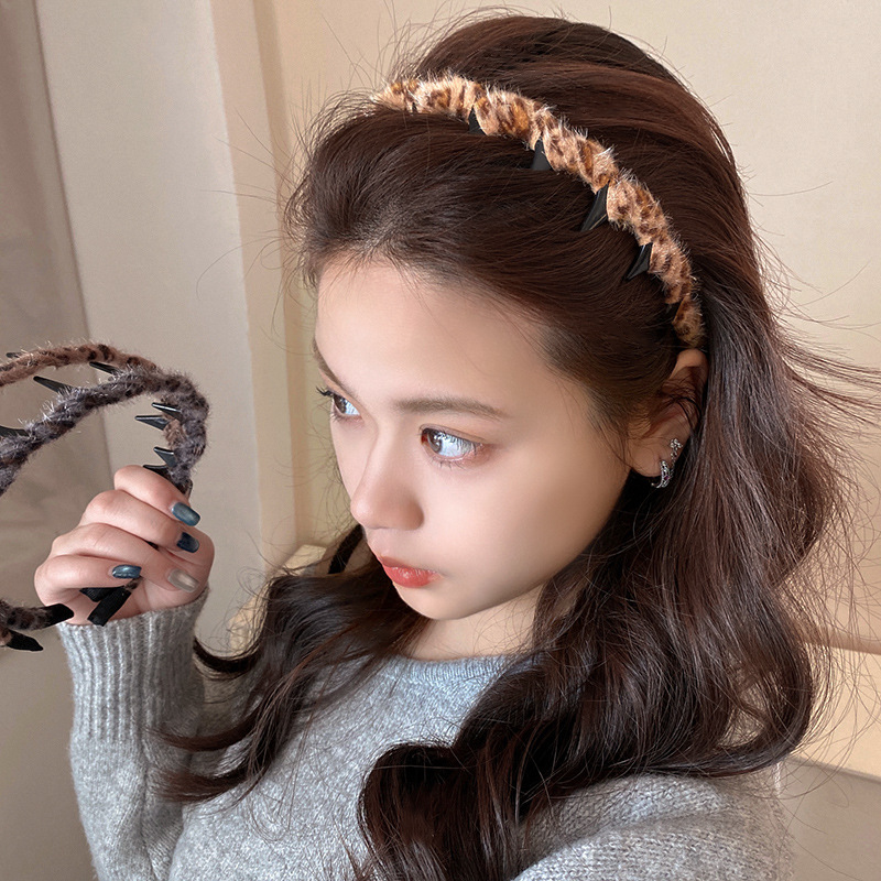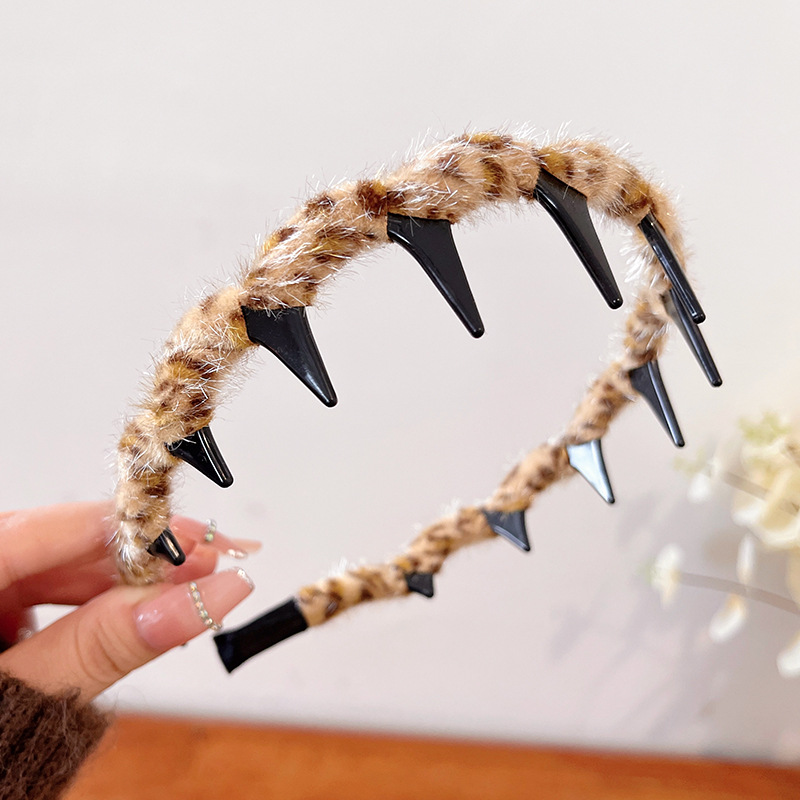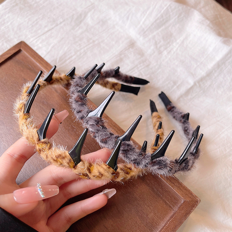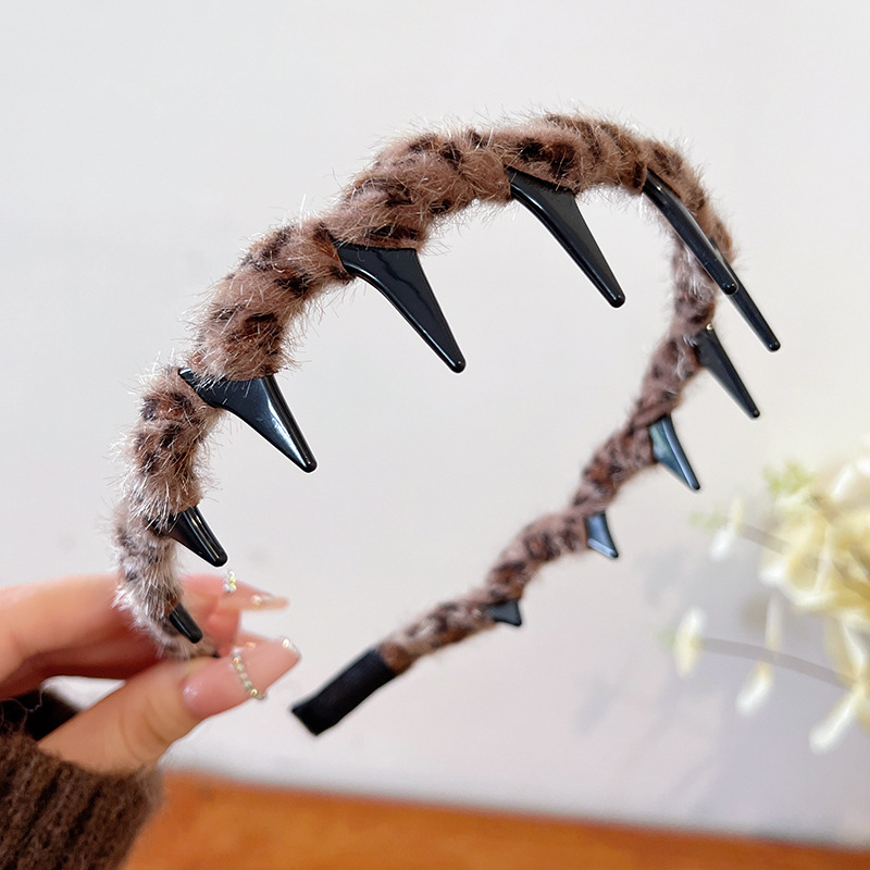 韩系高级感毛绒豹纹发箍女秋冬款蓬松纹理高颅顶洗脸压发头箍头饰