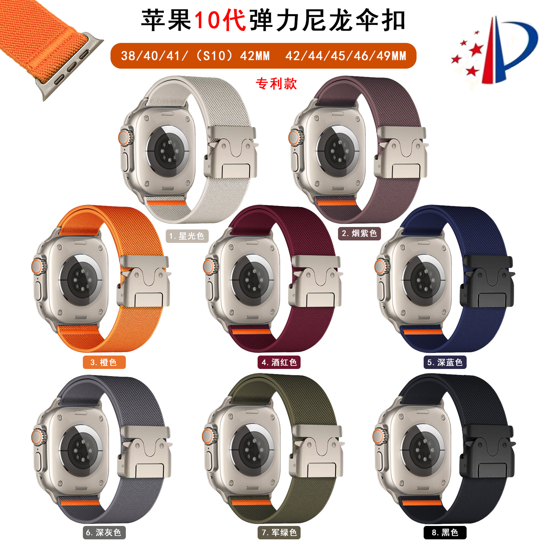适用苹果apple watch10ultra2弹力尼龙表带iwatch1-9降落伞扣表带