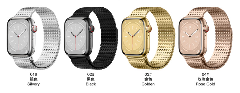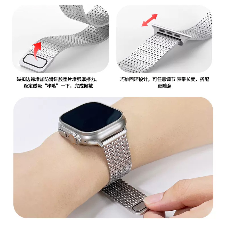 适用于iwatch7苹果Apple watch8表带不锈钢磁吸兰尼斯金属钢带s9