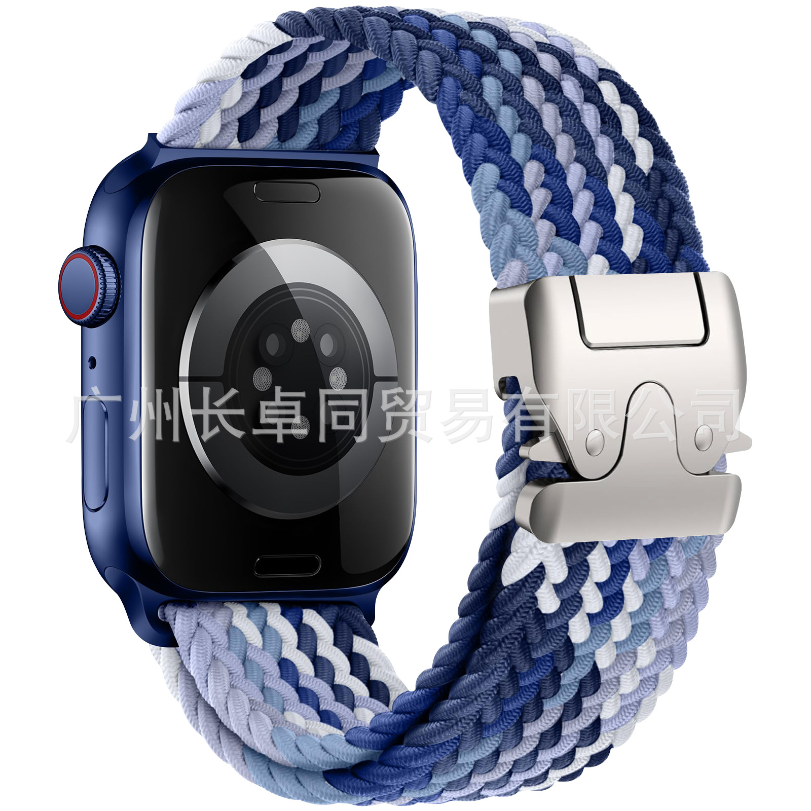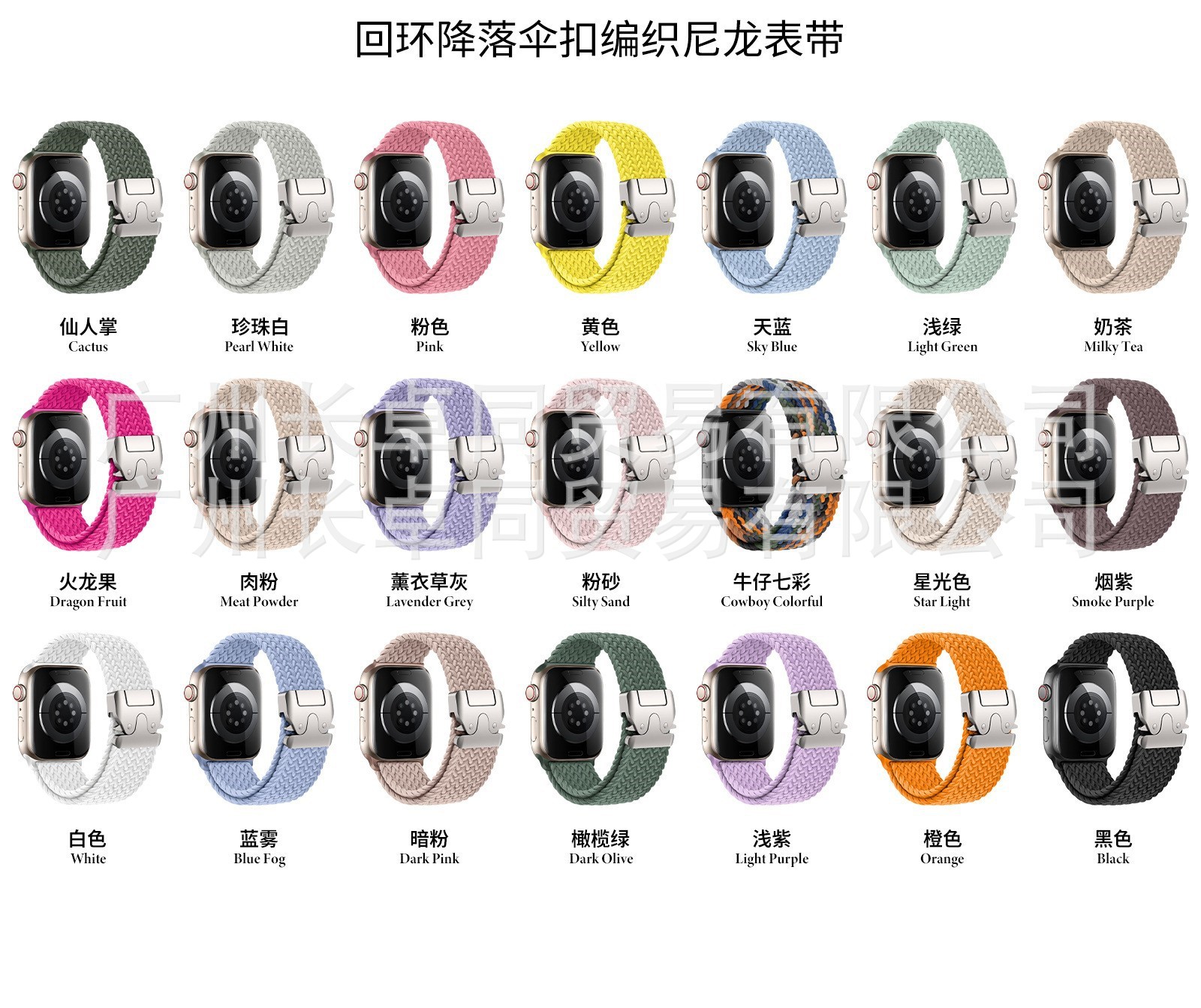 适用Apple Watch表带尼龙编织弹力苹果手表表带降落伞扣手表表带