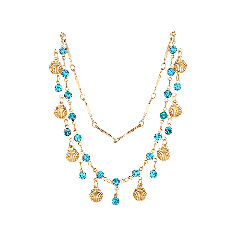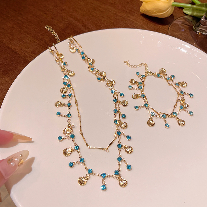 海的女儿蓝色锆石金色贝壳项链女轻奢小众高级感百搭气质手链手饰