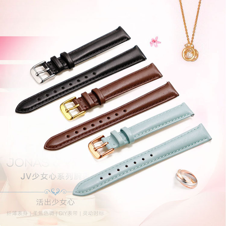 工厂直销平纹真皮表带颜色时尚配开关生耳男女款表带 一件代发