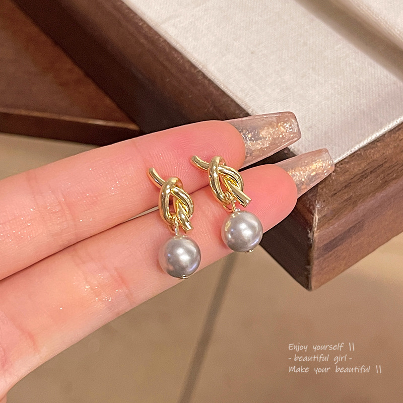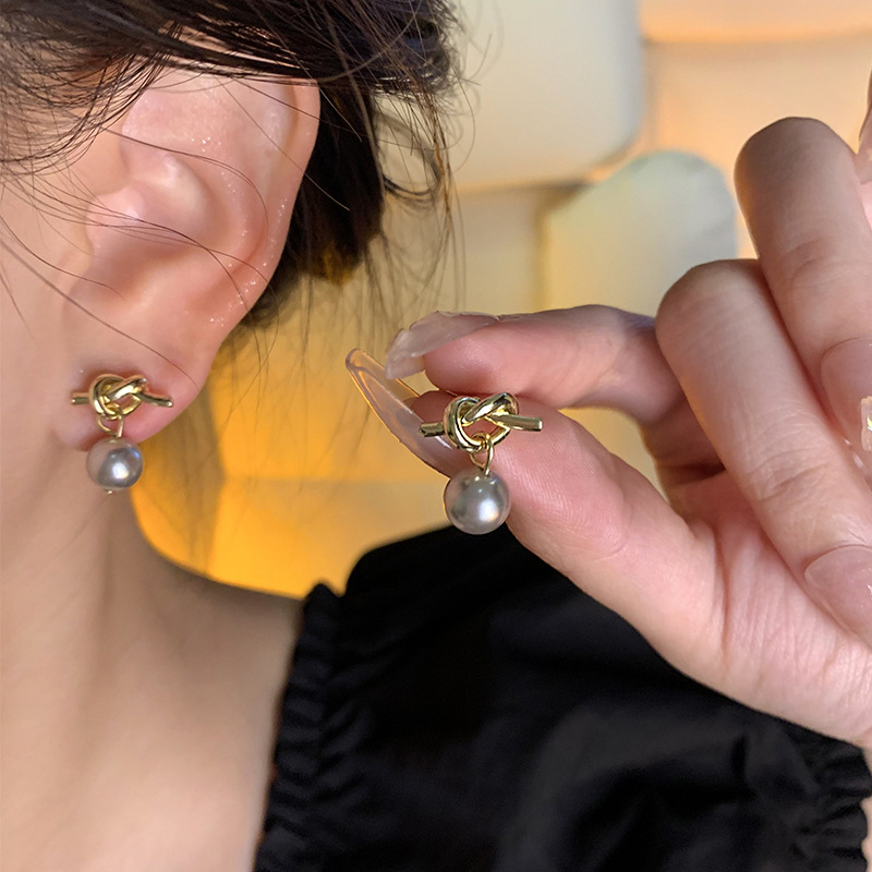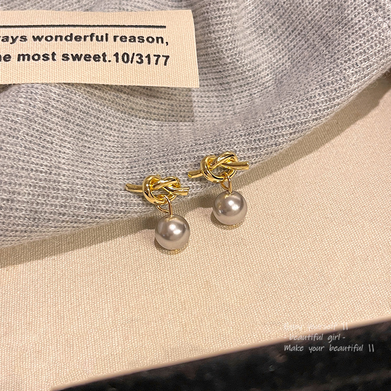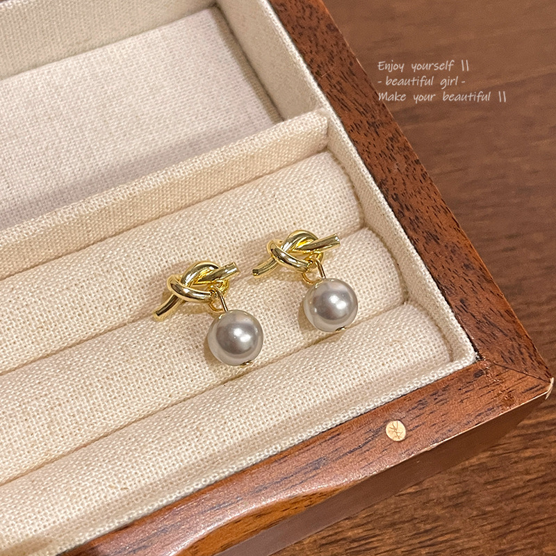 S925银针轻奢小众高级感打结珍珠耳钉女百搭气质网红同款耳钉耳饰