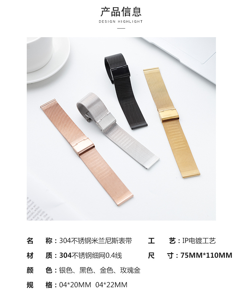 适用iwatch04线米兰尼斯表带 三星华为dw表带 不锈钢通用表带