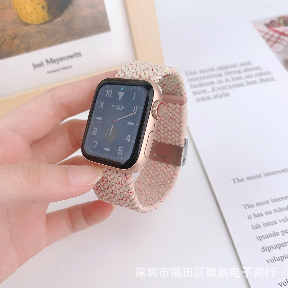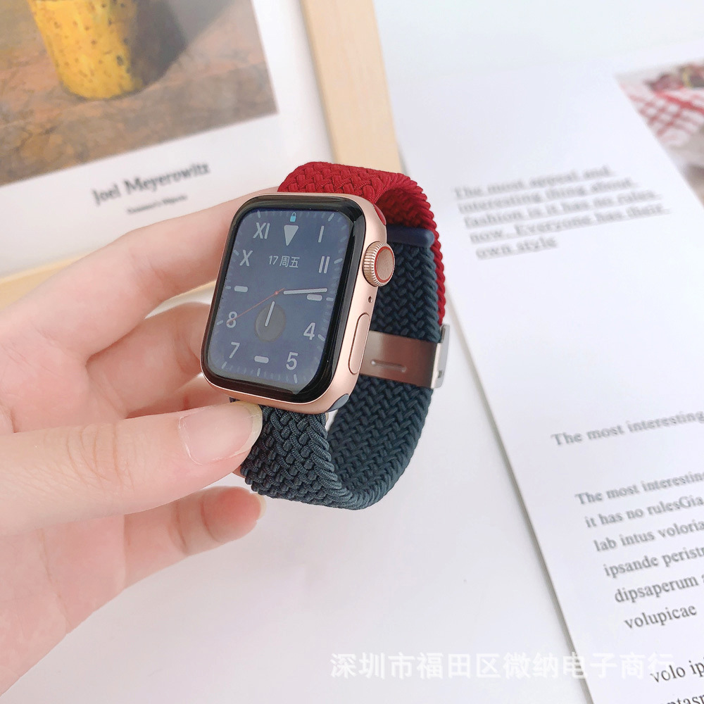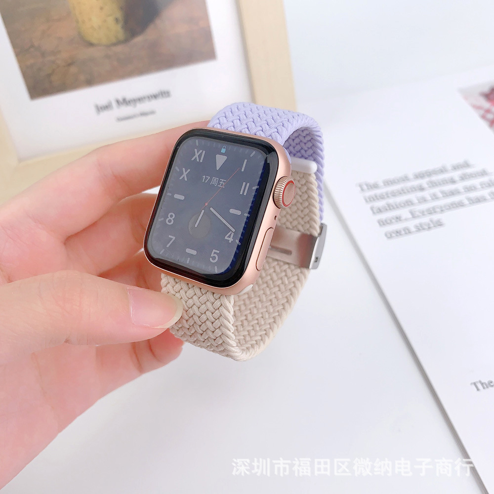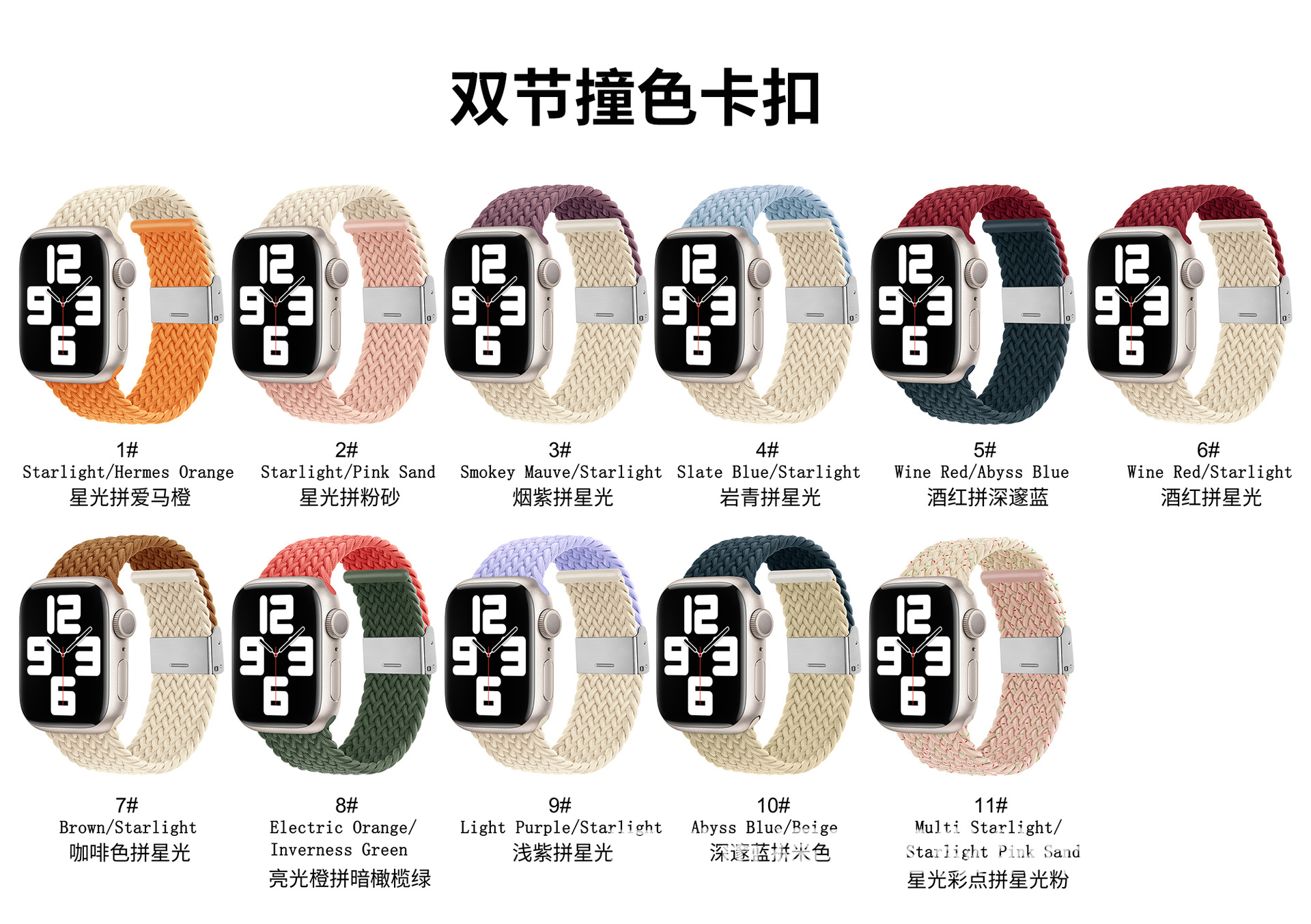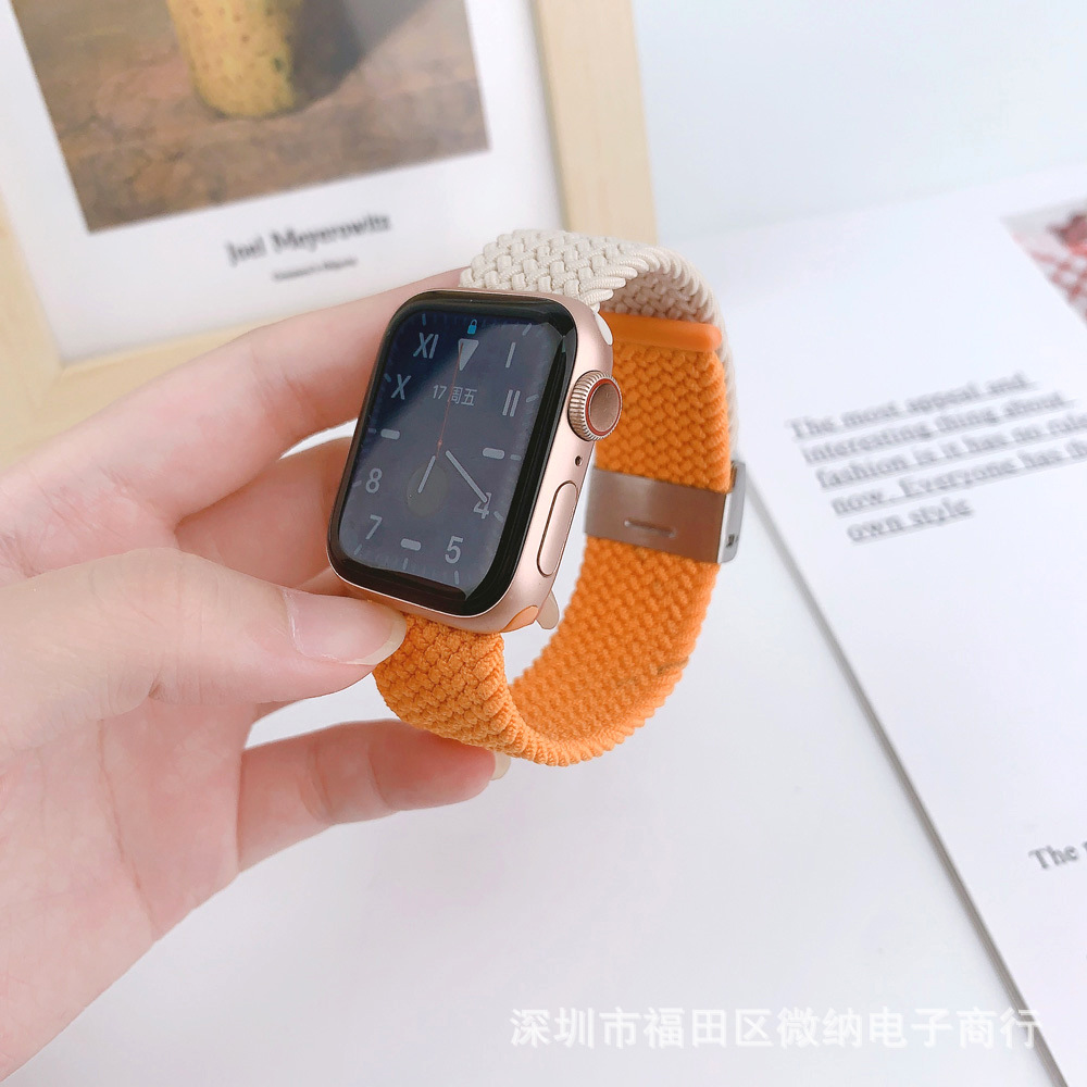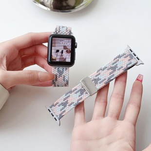 适用于applewatch456SE苹果手表带编织撞色一体卡扣表带新款