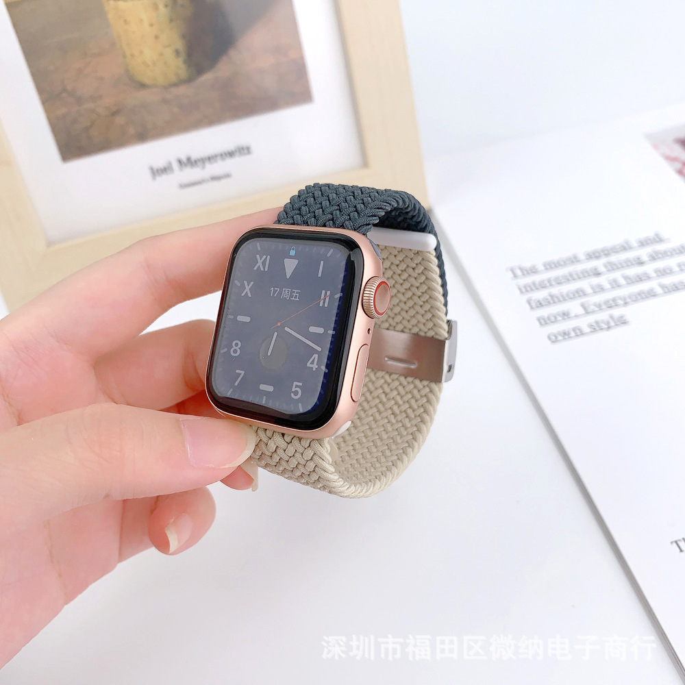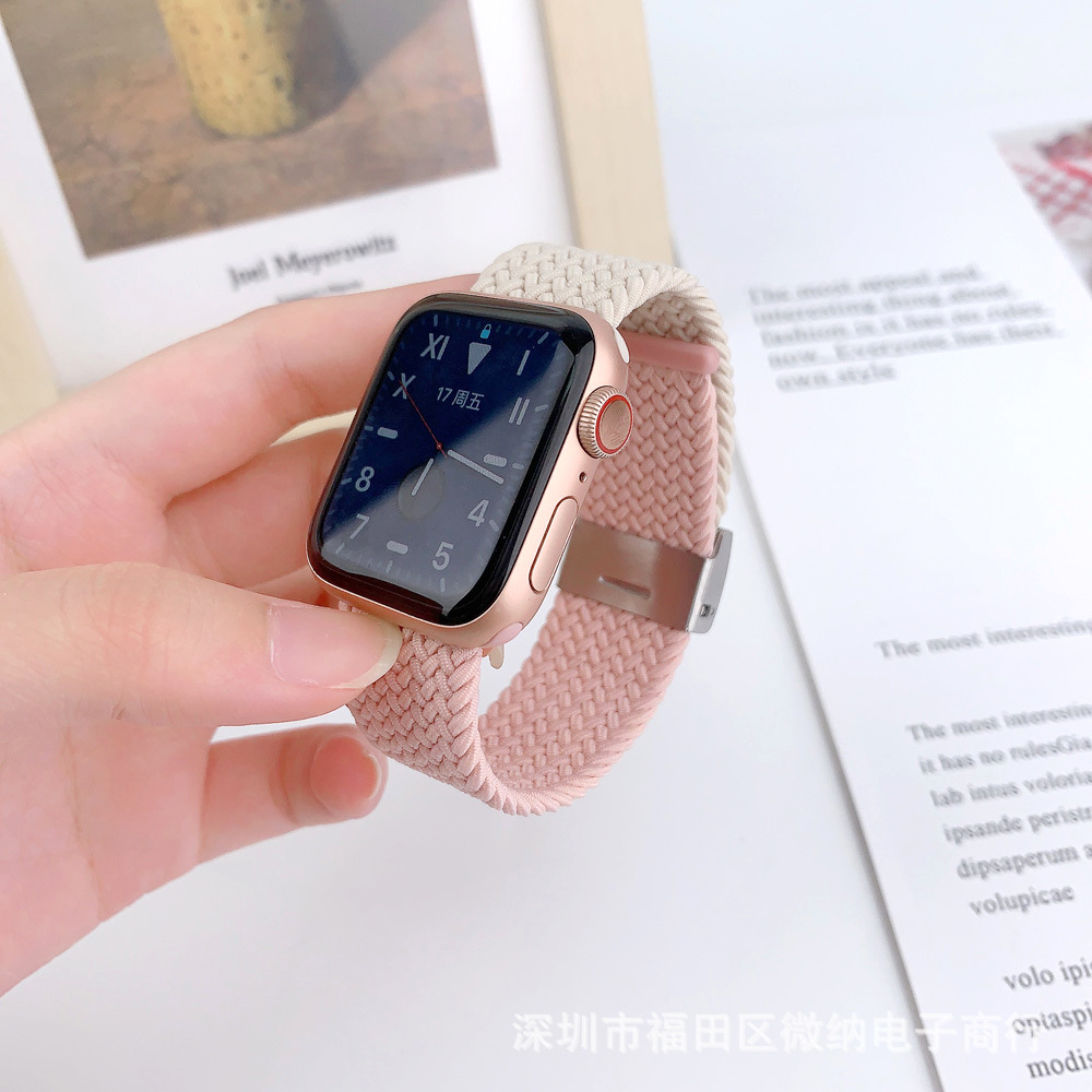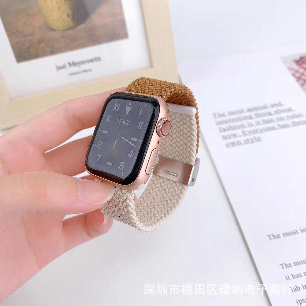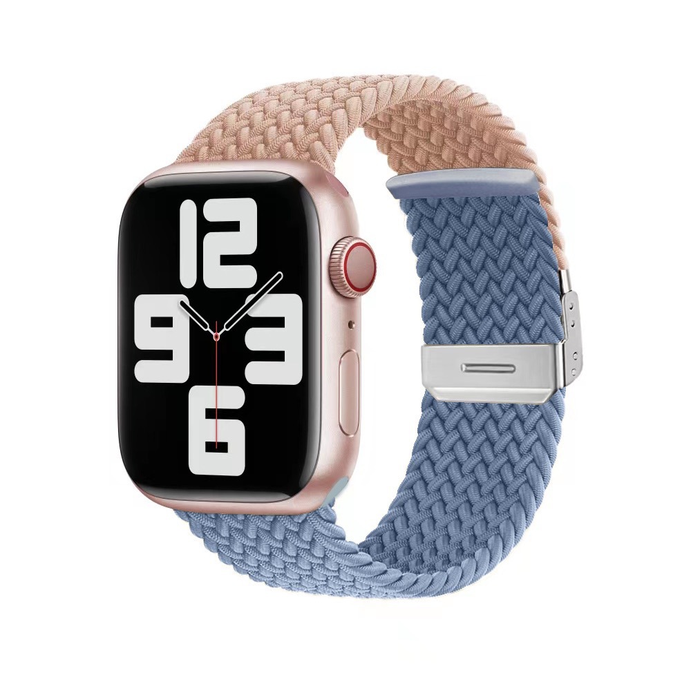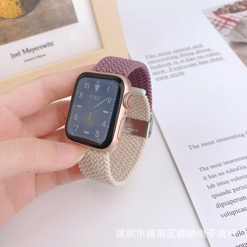 适用于applewatch456SE苹果手表带编织撞色一体卡扣表带新款