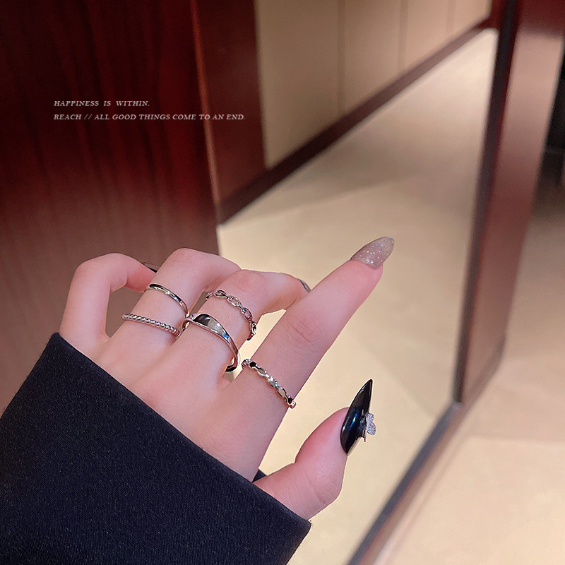 韩版设计感ins潮时尚个性几何形戒指抖音同款套装食指欧美小指戒