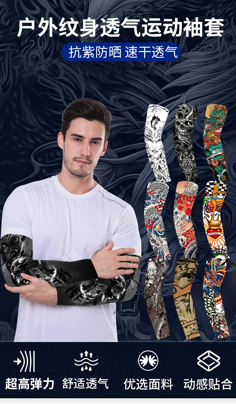 夏季骑行防晒纹身袖套仿真刺青速干护臂户外运动遮阳透气高弹冰袖