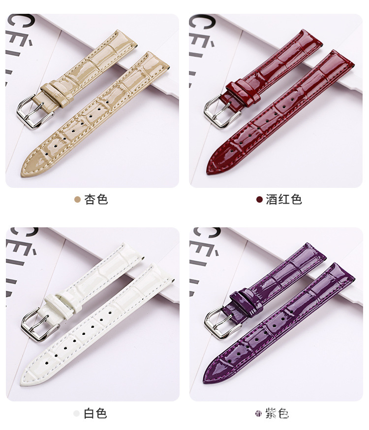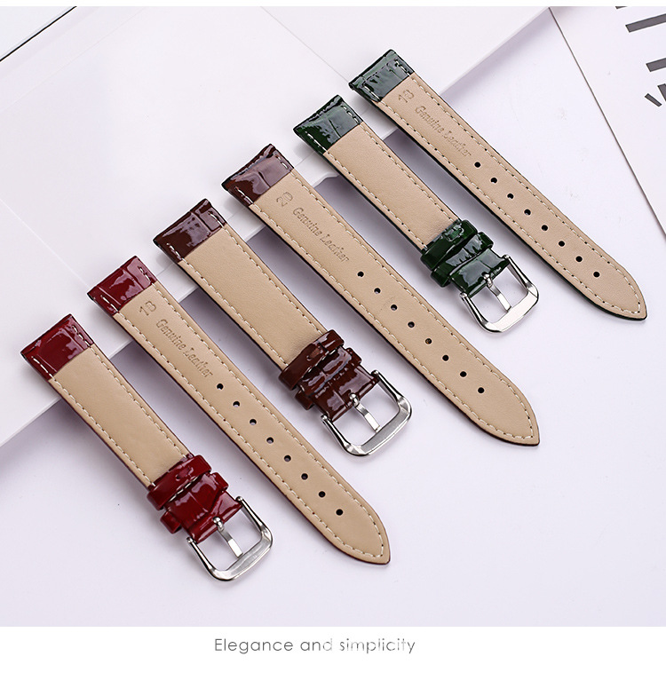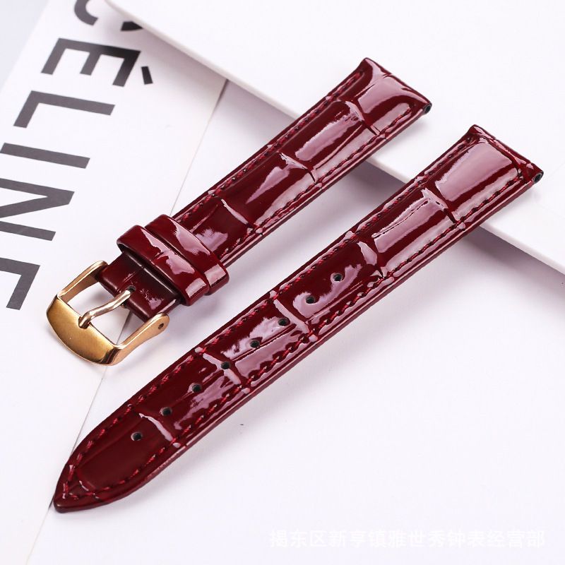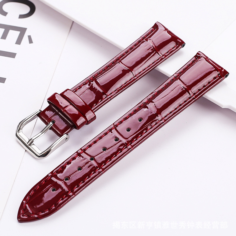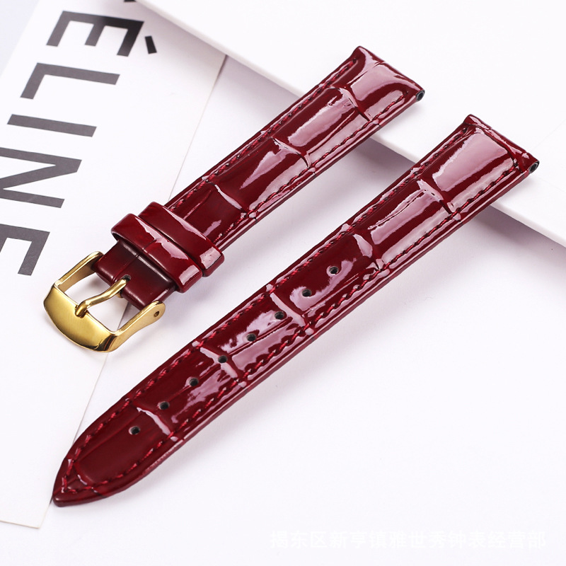 冰面亮光高光酒红色牛皮真皮表带男女通用竹节纹彩色表带厂家批发