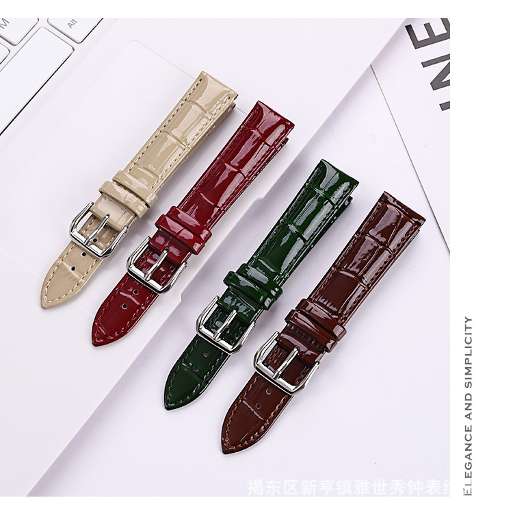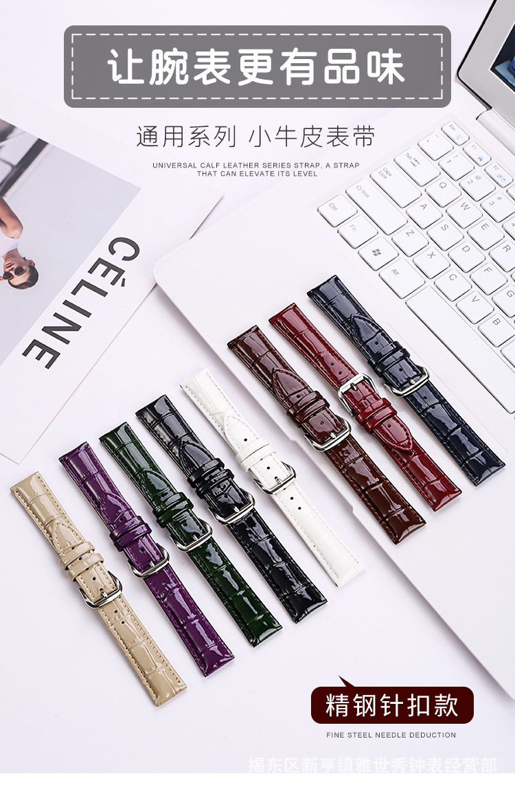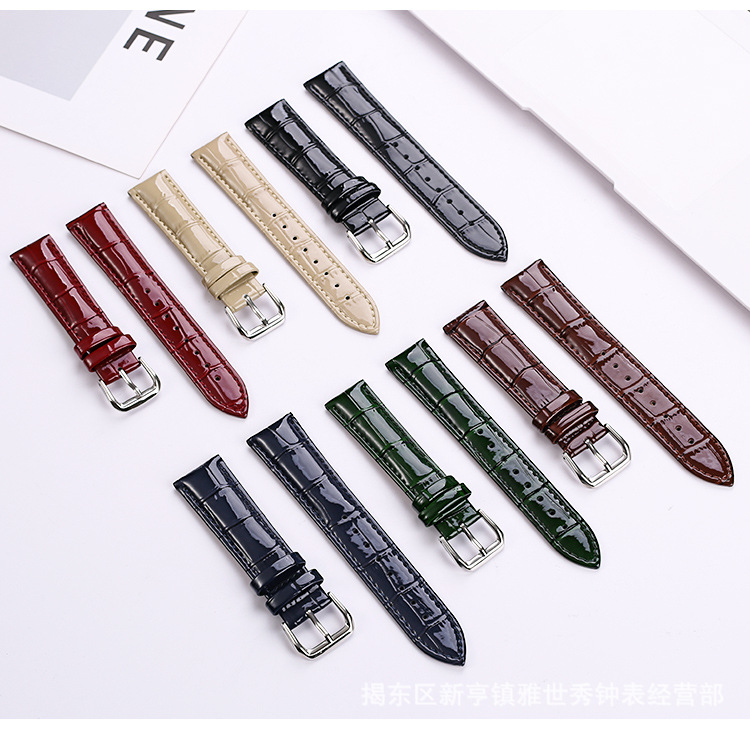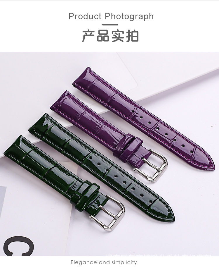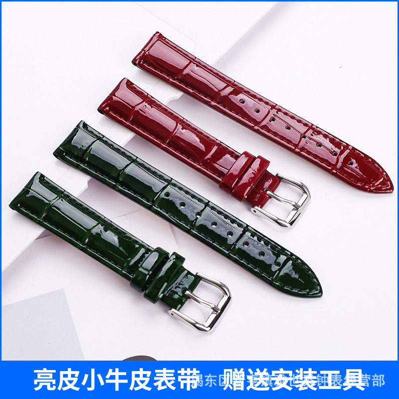 冰面亮光高光酒红色牛皮真皮表带男女通用竹节纹彩色表带厂家批发