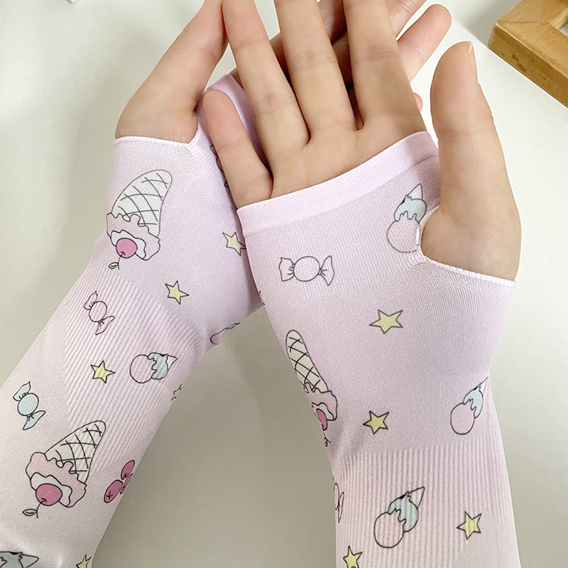 新款儿童防晒冰袖可爱卡通薄款户外遮阳透气儿童印花冰丝袖套批发