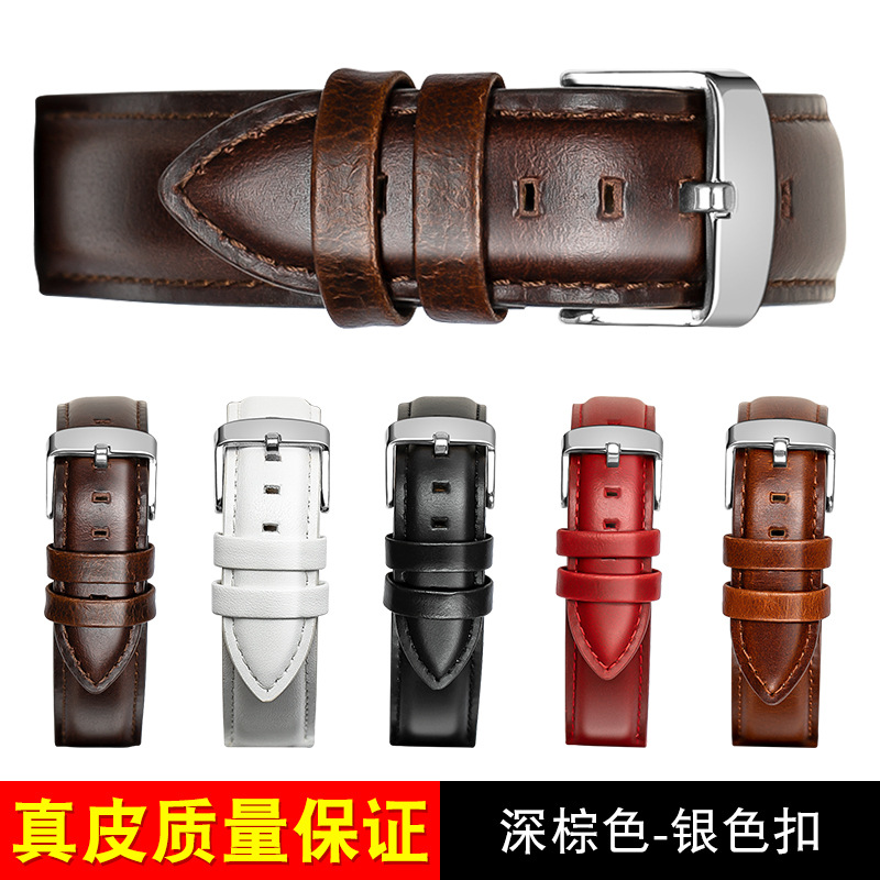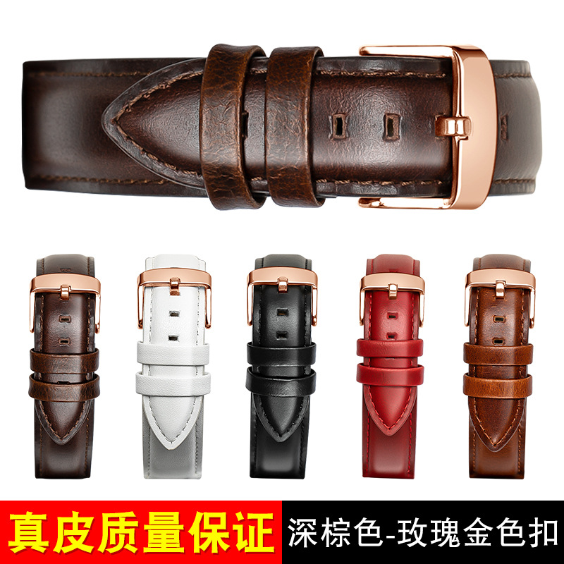 工厂现货真皮表带 适配dw手表带男女针扣油皮表带18 20mm复古表带