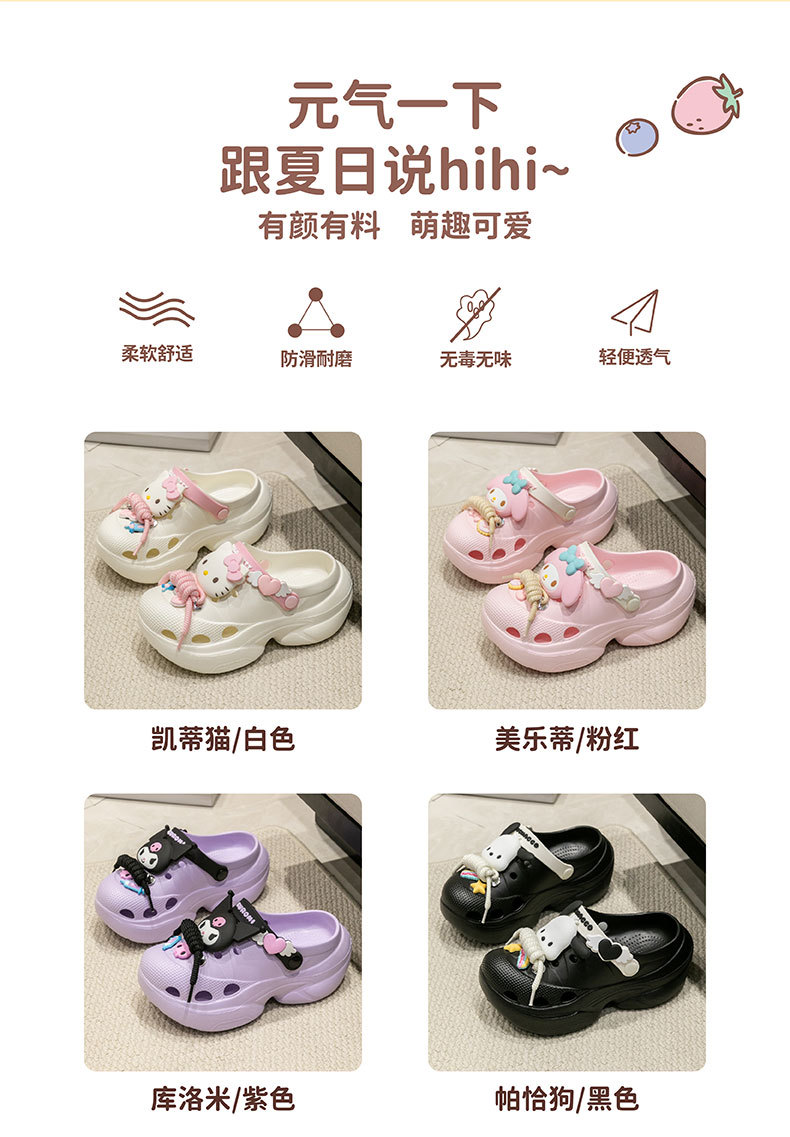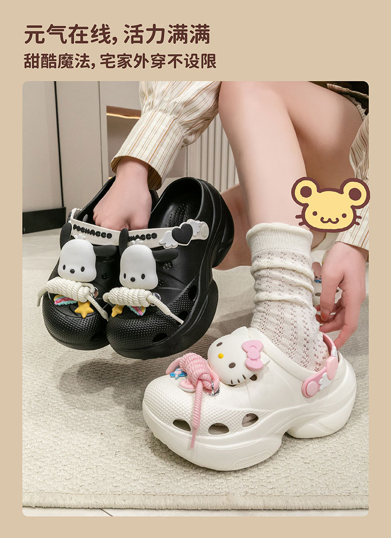 三丽鸥女式洞洞鞋库洛米帕恰狗时尚户外