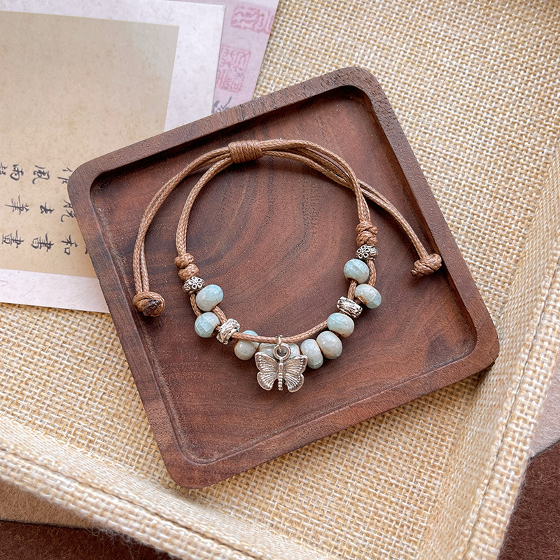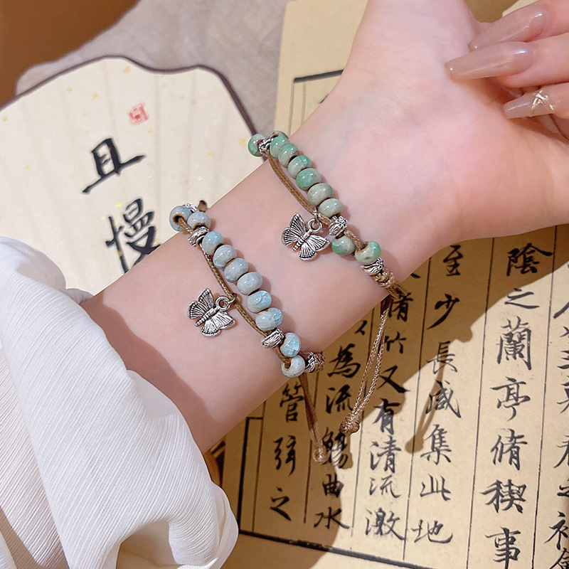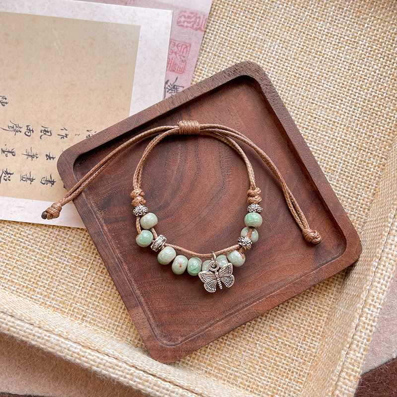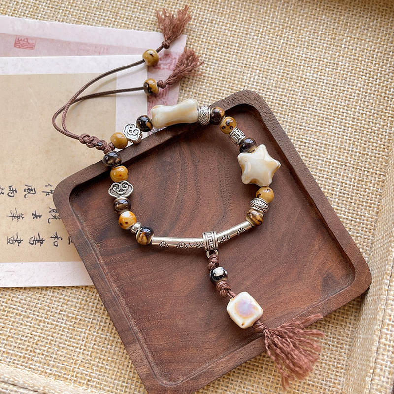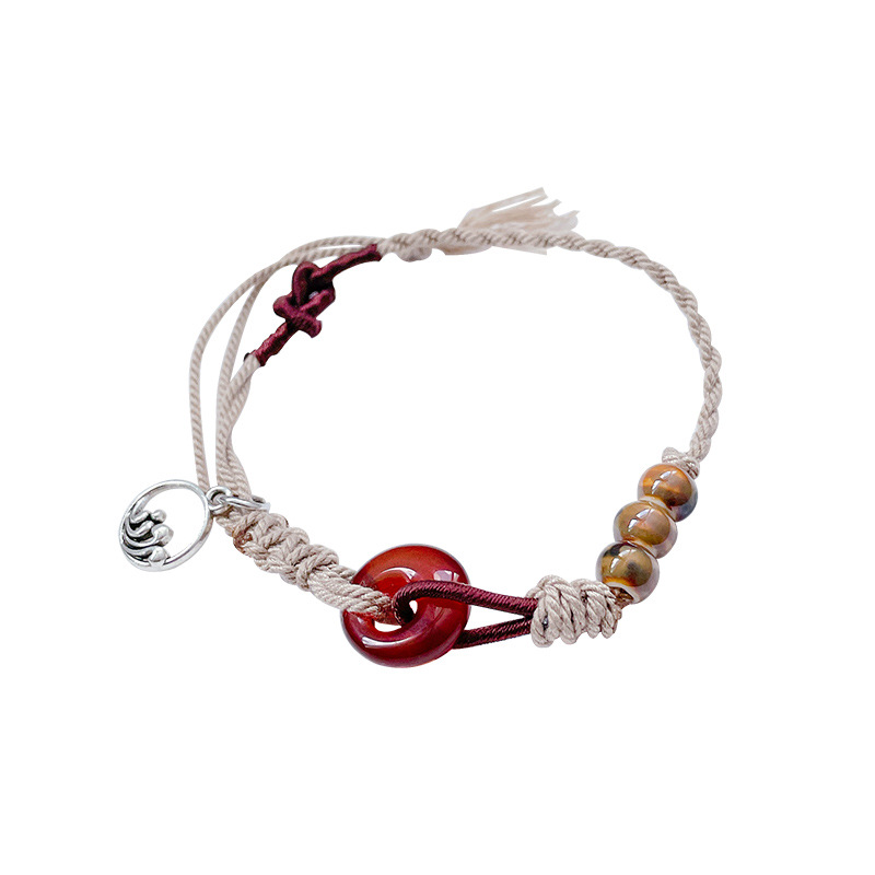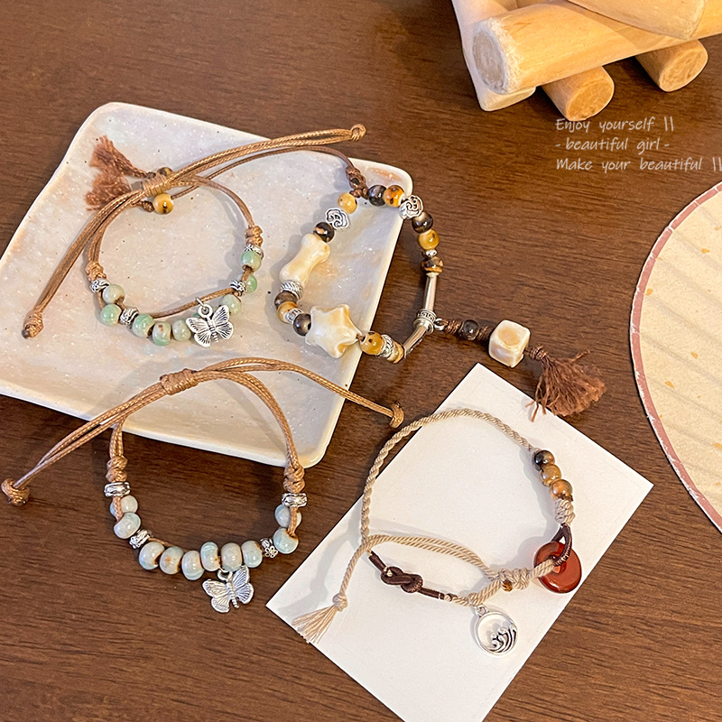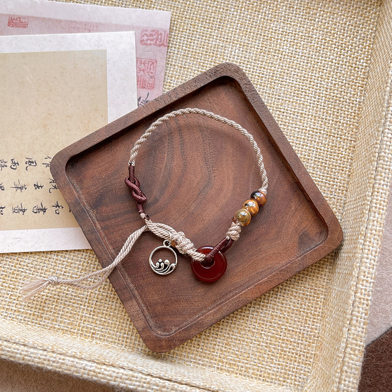 新中式中古风小红书长河落日圆平安扣手链女抽拉绳串珠手串手饰品