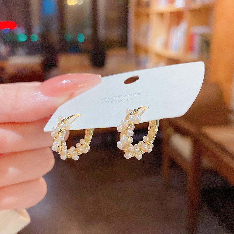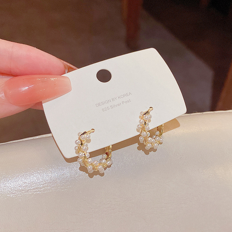 S925银针法式C形状缠绕珍珠耳环女ins潮网红同款简约百搭气质耳钉