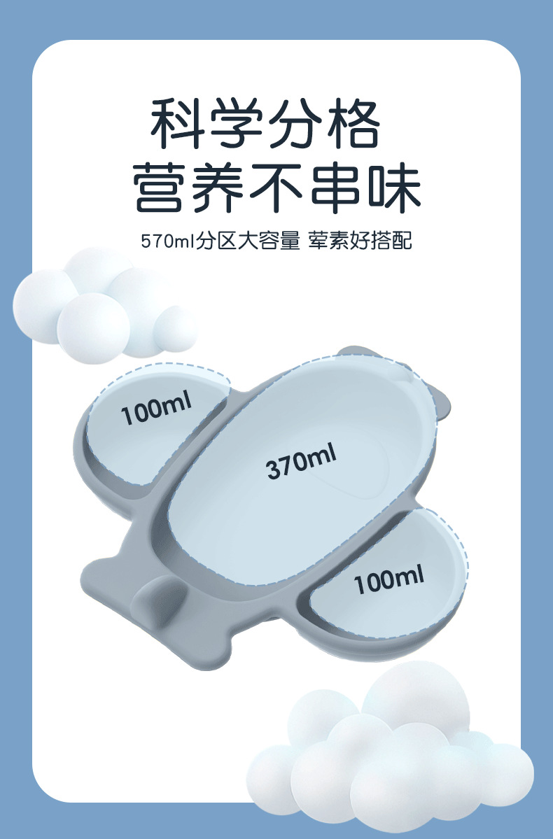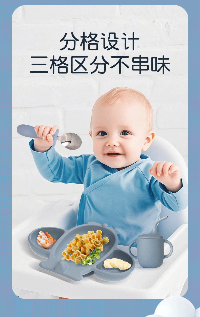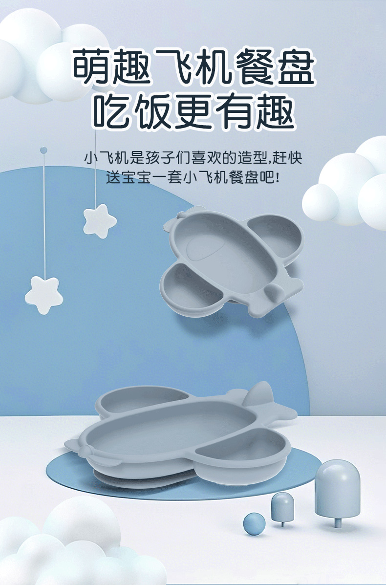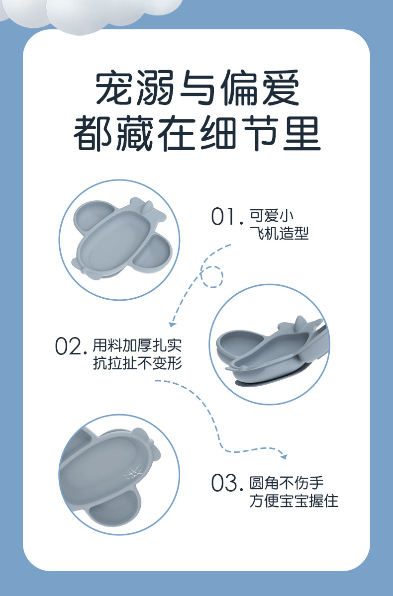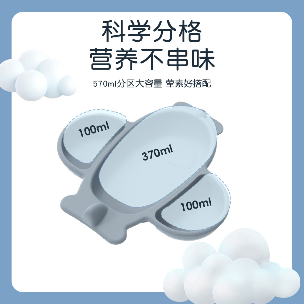 新品硅胶飞机餐盘套装宝宝分格餐盘铂金硅胶礼品喂养餐盘套装