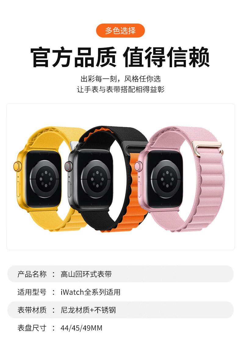 新品适用苹果表带applewatch改款运动尼龙编织iwatch表带高山回环