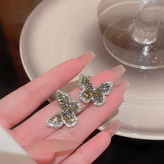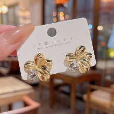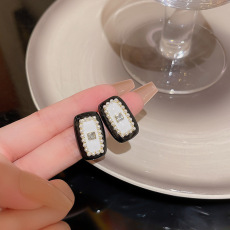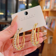 S925银针韩国网红同款夸张几何形耳环ins潮简约百搭拉丝磨砂耳钉