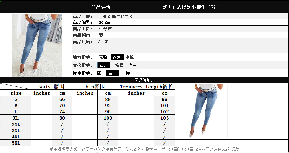 亚马逊跨境新款显瘦高腰烫钻牛仔裤女装弹力水洗修身小脚裤现货