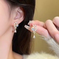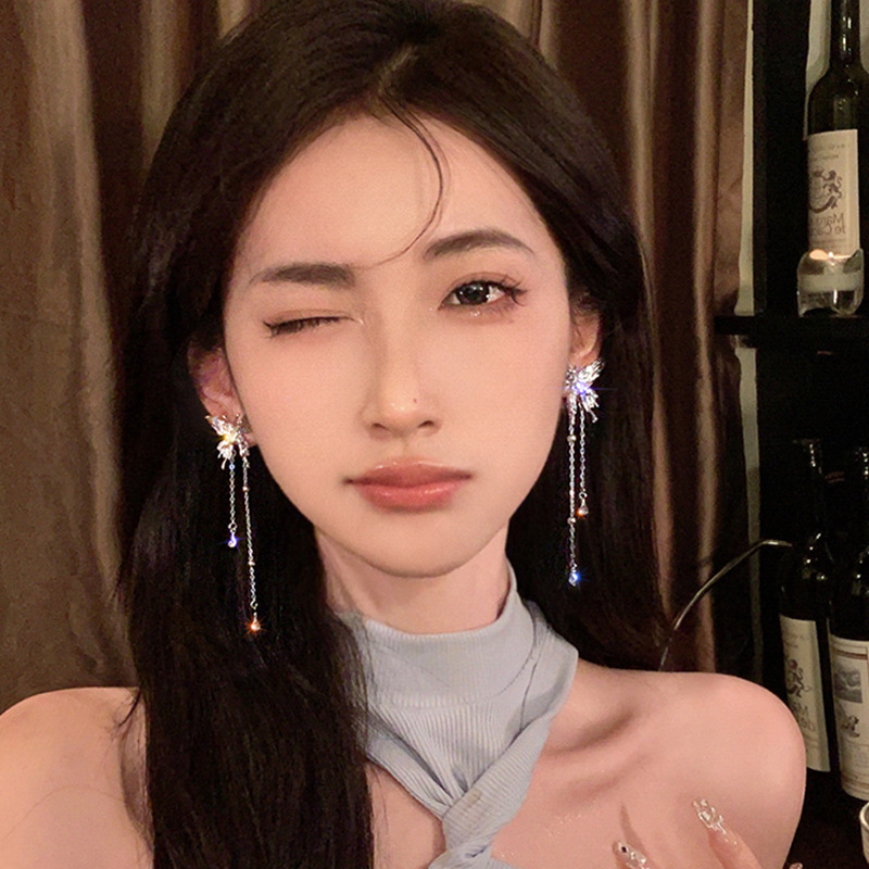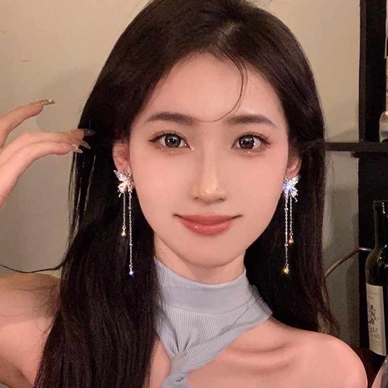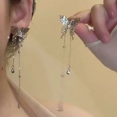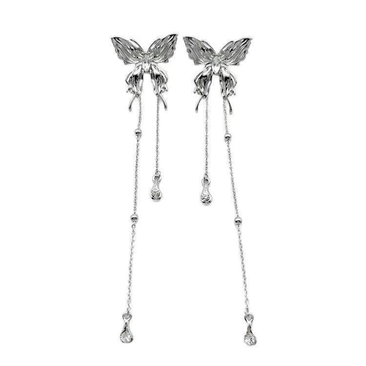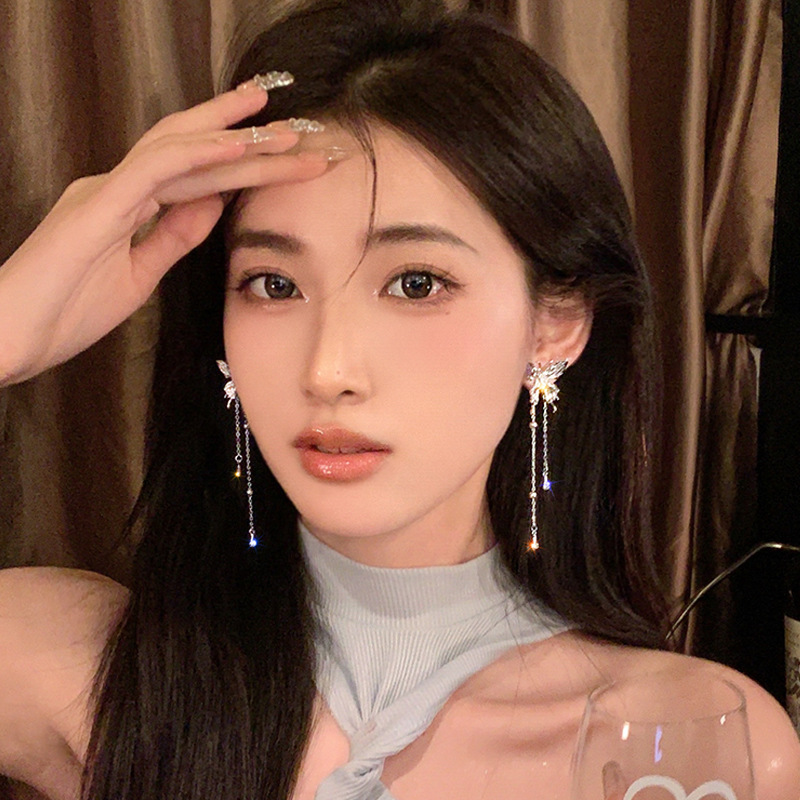 S925银针长款流苏耳环女轻奢小众高级感液态蝴蝶耳钉网红同款耳饰