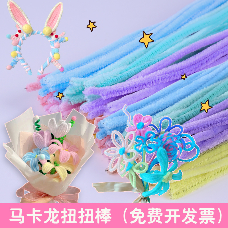 马卡龙色系毛根扭扭棒花束手工diy幼儿园加厚加密毛条材料包批发