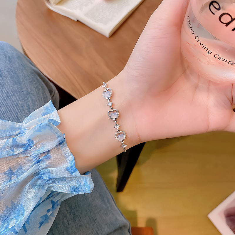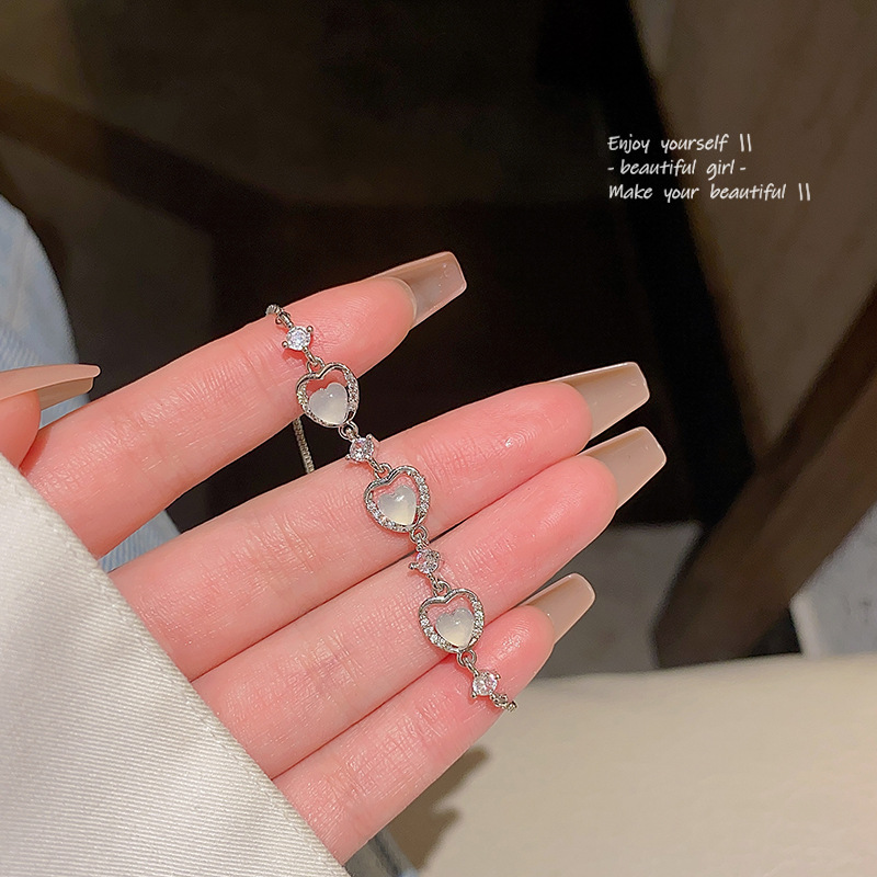 轻奢小众猫眼石爱心手链女ins潮高级设计感闪闪锆石手串手饰批发