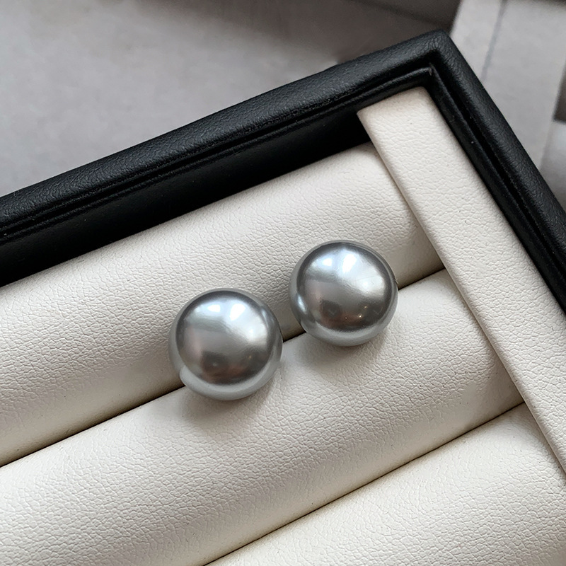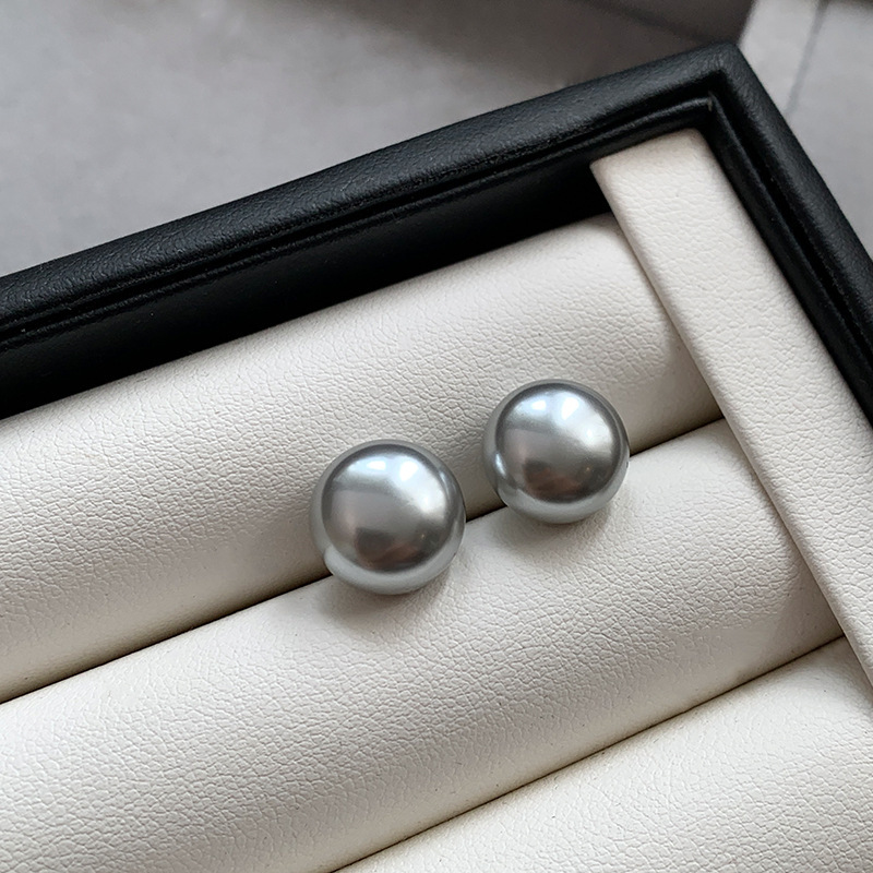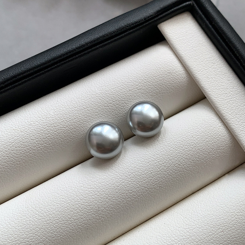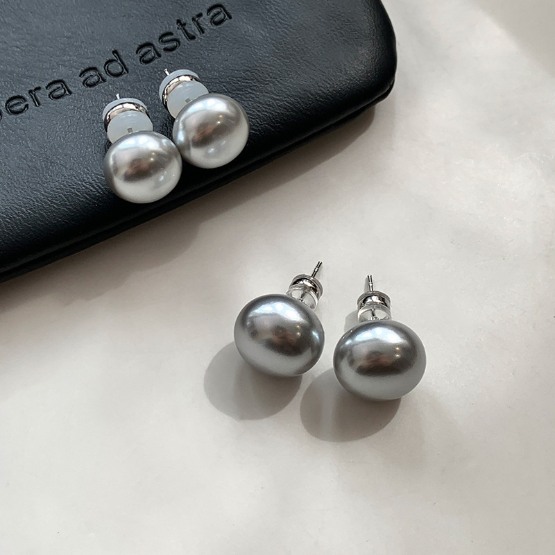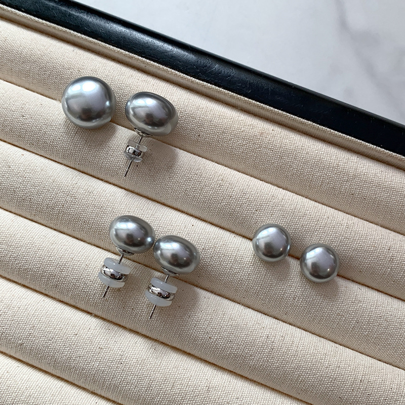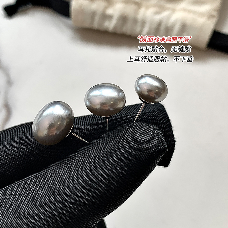 纯银针施家真多麻银灰色扁圆馒头珍珠耳钉简约时尚气质高级感耳环
