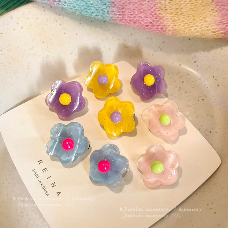 多巴胺少女心彩色花朵耳夹小众百搭气质无耳洞耳骨夹耳钉可爱耳饰