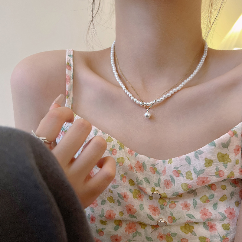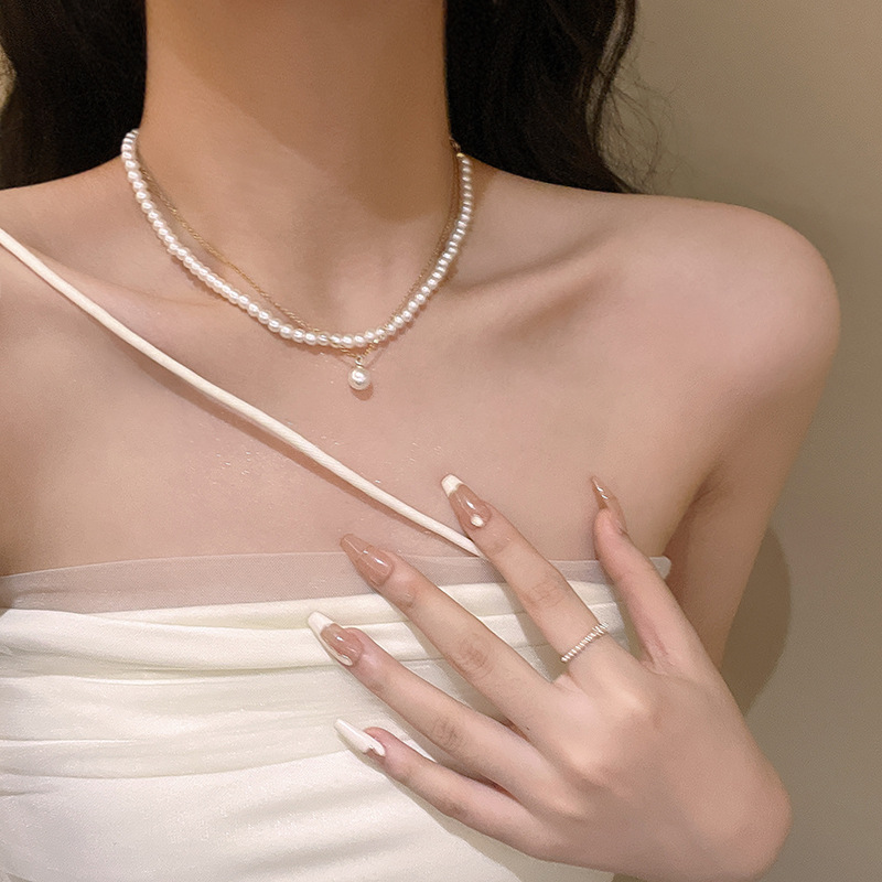 轻奢小众双层珍珠项链女高级设计感ins潮百搭气质网红同款锁骨链