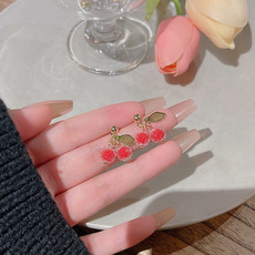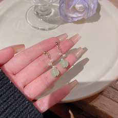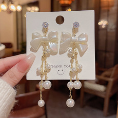 S925银针新中式猫眼石长款耳环女ins潮百搭气质珍珠耳钉耳饰批发