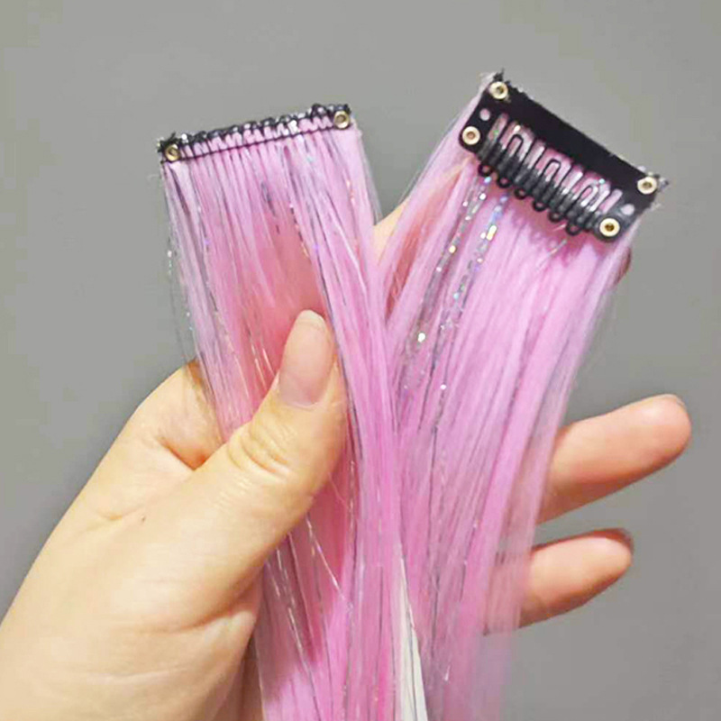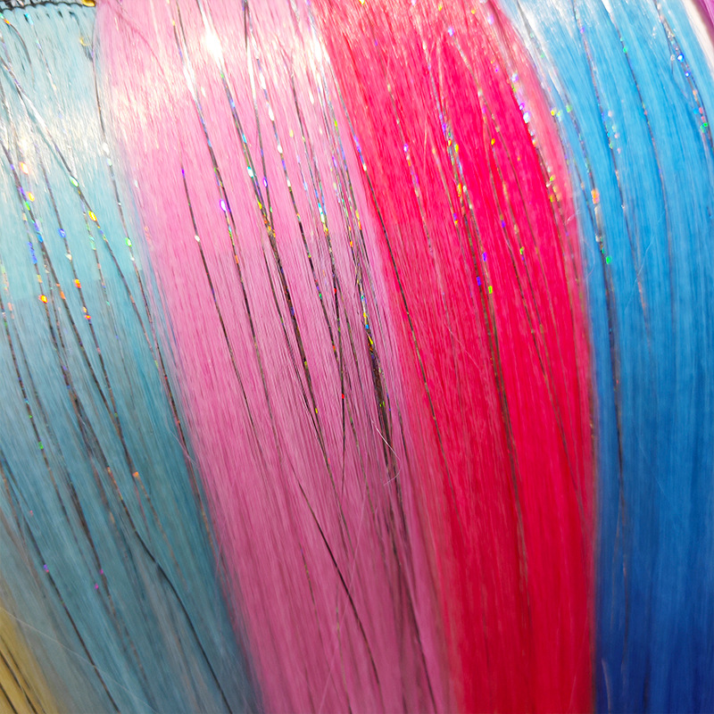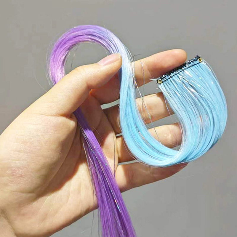 新款外贸tinsel hair镭射金丝渐变色闪亮金属丝无痕接发源头工厂