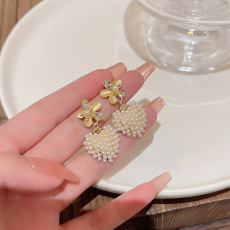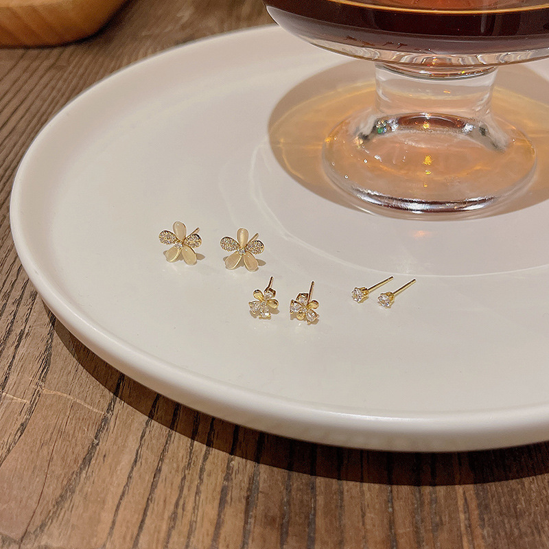 925银针简约气质套装耳环女ins潮高级设计感微镶锆石花朵耳钉耳饰